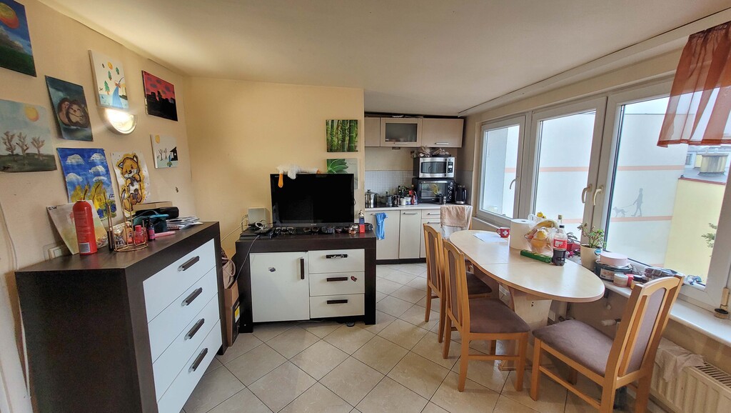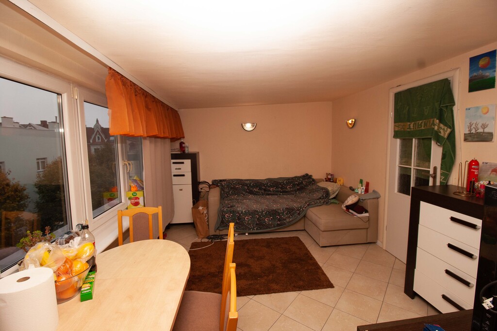 2 rooms in the very center of Szczecin, excellent location for rent – next to the Kaskada shopping center. Fenced courtyard with parking spaces for residents. Convenient access to public transportation (buses and trams). Within a few hundred meters: shopping center, restaurants, and Bogusław Promenade. The apartment is located on the 5th floor of a 1960s building, created by converting the attic. No sloped ceilings and PVC windows. Living room with kitchenette facing the courtyard, bedroom with windows overlooking the park. Bathroom with toilet, tiled and terracotta, and shower. Additionally, there is a wardrobe/alcove in the hallway. Heating and hot water from the city network. Rent: approximately PLN 570. The apartment is currently rented – there is a possibility of taking over the lease.