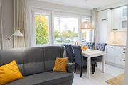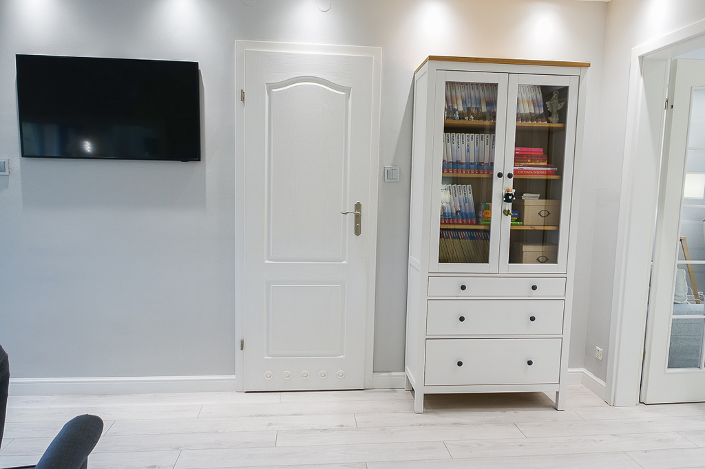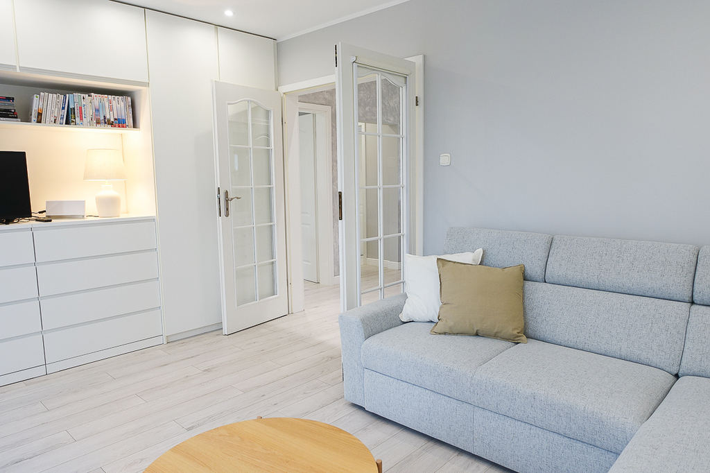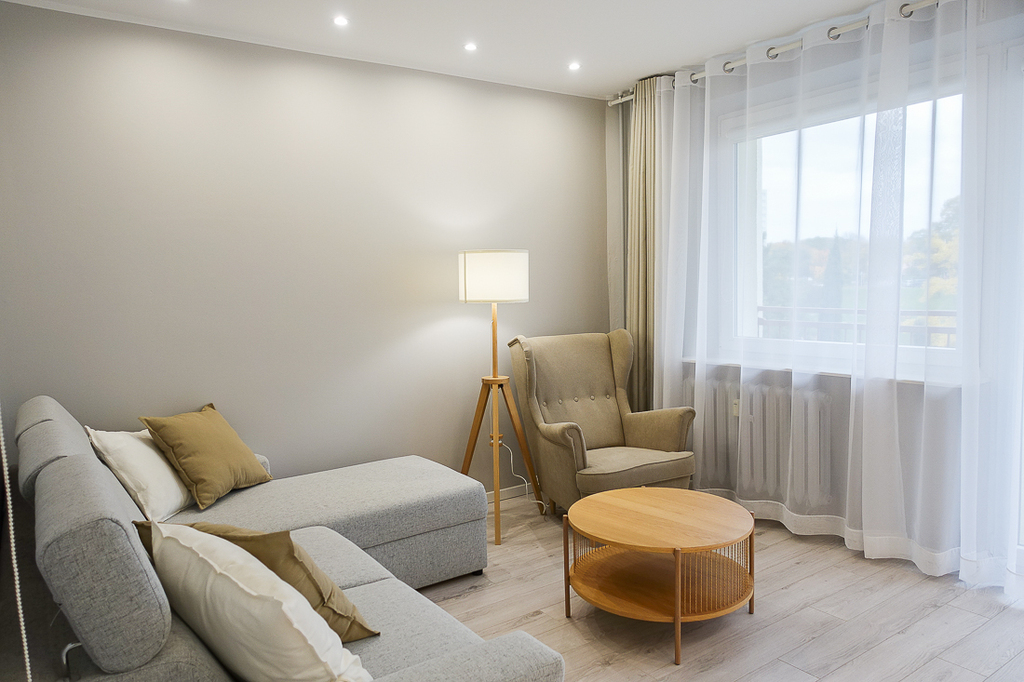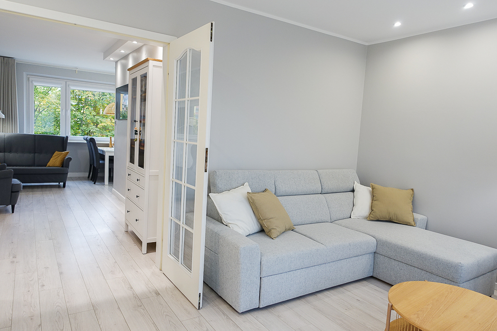 A beautifully designed, modern, and comfortable 4-room apartment, recently renovated, furnished with new furniture and equipped with appliances, boasts a large balcony perfect for morning coffee, overlooking the nearby lake and trees. The apartment is 63.6 m² in size. It is a two-sided apartment with windows facing northeast and southwest. It is located on the first floor of a low-rise building on Jasna Street. Furniture and appliances are provided at no extra charge. APARTMENT DESCRIPTION: A 16 m² room with a 5.6 m² balcony, furnished for relaxation. A 16.8 m² L-shaped room with a kitchenette and a comfortable dining area was created by combining the living room and kitchen with a window. Alternatively, the previous layout could be restored to create a living room and a separate kitchen with a window. The kitchen features new built-in furniture, including a dishwasher, a gas stove with an electric oven, a modern white extractor hood, and a built-in refrigerator with a freezer. Two rooms: a 10.6 m² bedroom and an 8.1 m² study. The bathroom has undergone a complete renovation and includes a shower, a toilet with a Geberit system, a large mirror, a sink with a cabinet, and a built-in washing machine, shelves for towels, household chemicals, etc. This space provides space for a clothes dryer. The bathroom, a combination of a bathroom and toilet, has a renovated area of 4.7 m². The hall is a 5.5 m² square, a room with a balcony, and a 10.6 m² room on the southwest side, while the room with a kitchenette and the smallest room face northeast. New PVC windows, new flooring, new furniture and appliances. New, bright, modern door joinery. Smooth, painted walls. Rent: PLN 740, district heating, municipal hot water. BUILDING DESCRIPTION: Four-story building from the 1980s, constructed of prefabricated concrete panels. The building is insulated. The cooperative plans to replace the balconies and clean the facades. NEIGHBORHOOD: Nearby, there's a construction site, developed infrastructure, shops, schools, kindergartens, and public bus service. I recommend this property because it offers immediate move-in into a furnished and equipped apartment.