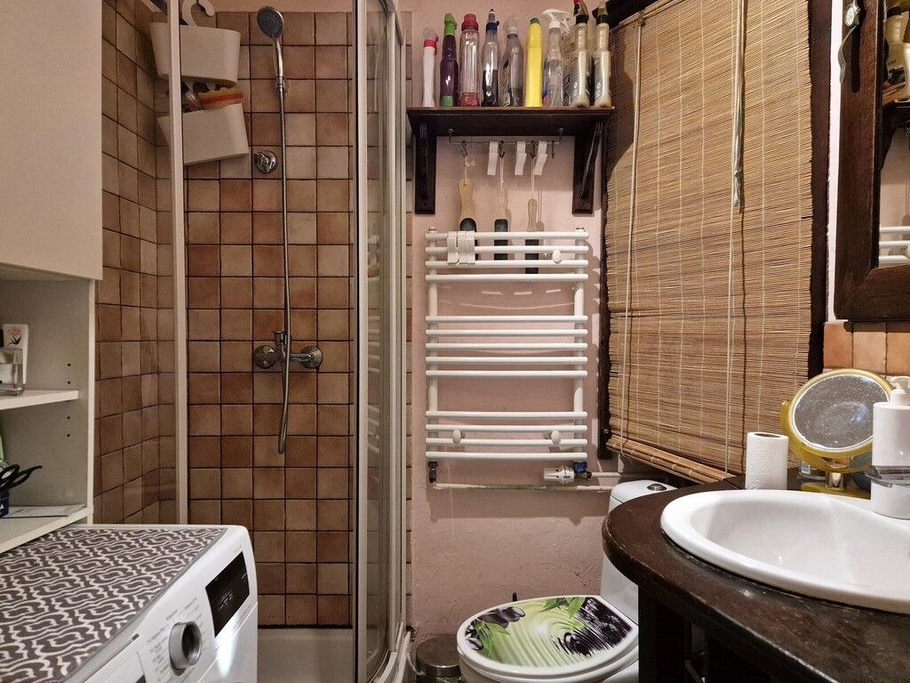 * bathroom with shower, toilet and washbasin with the possibility of enlargement