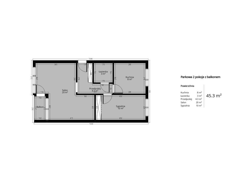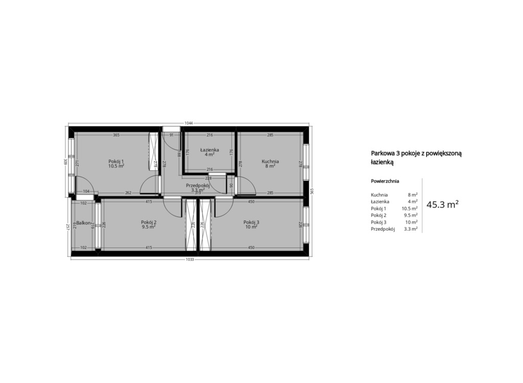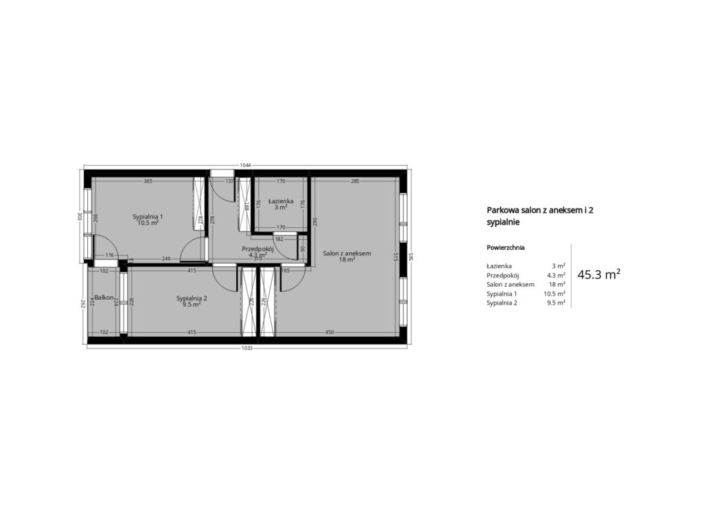 * area 45.3 sq m