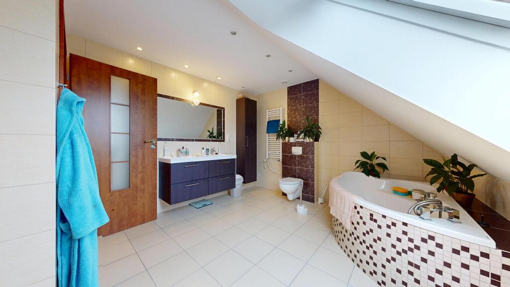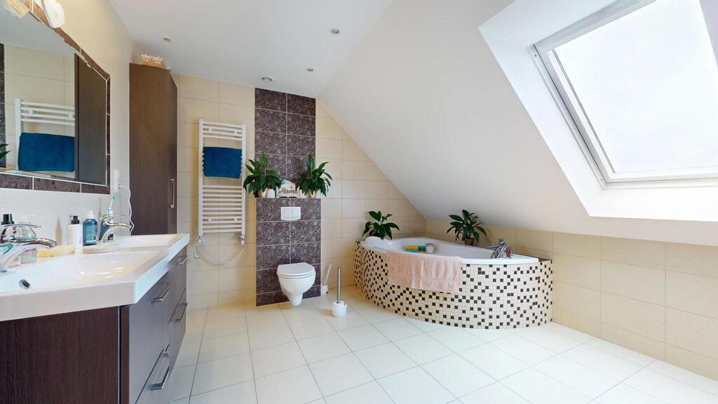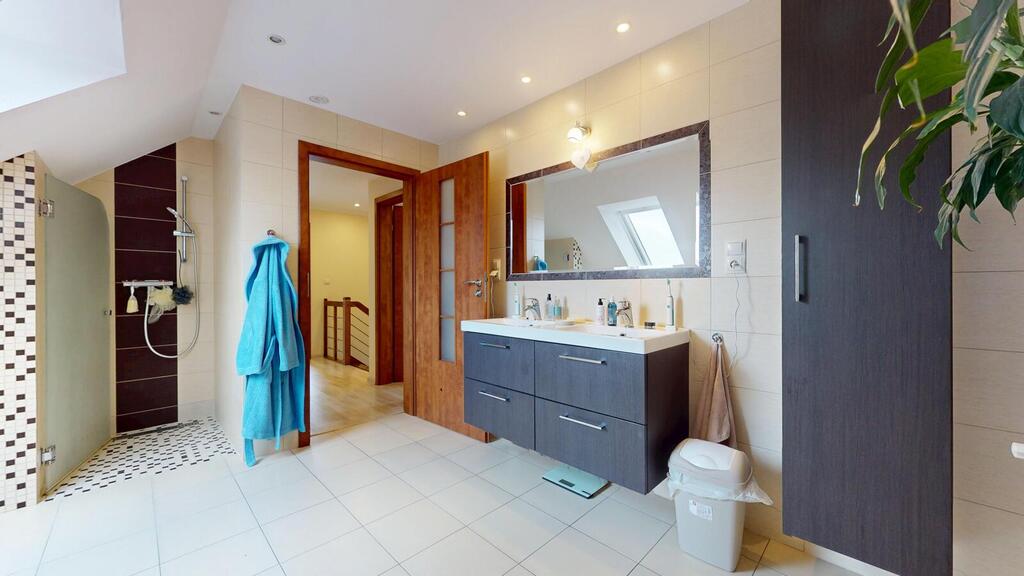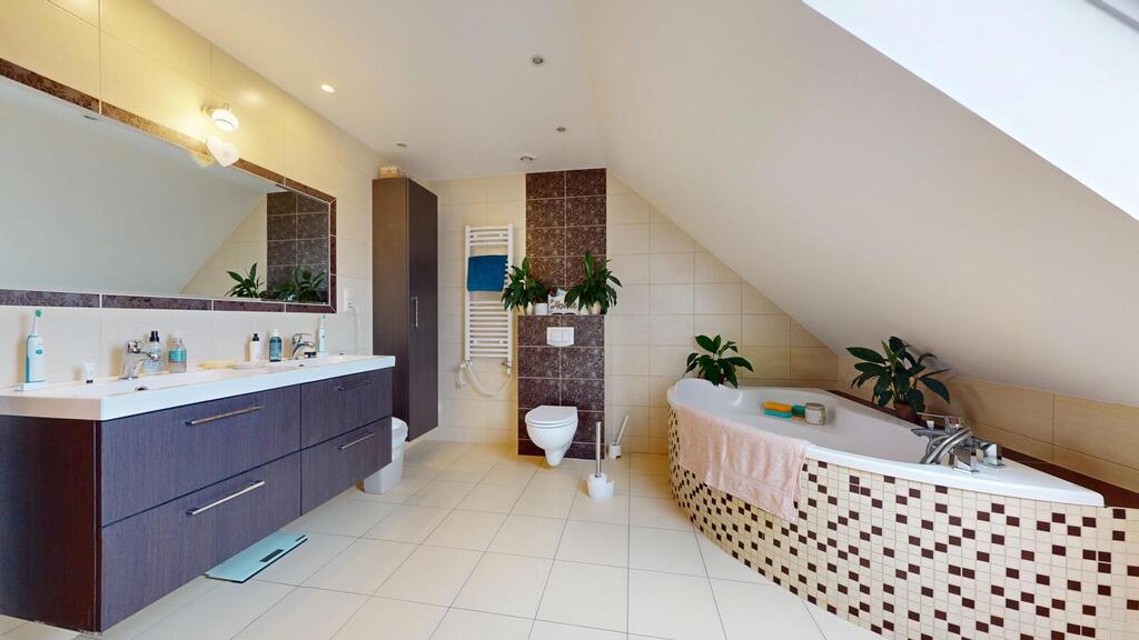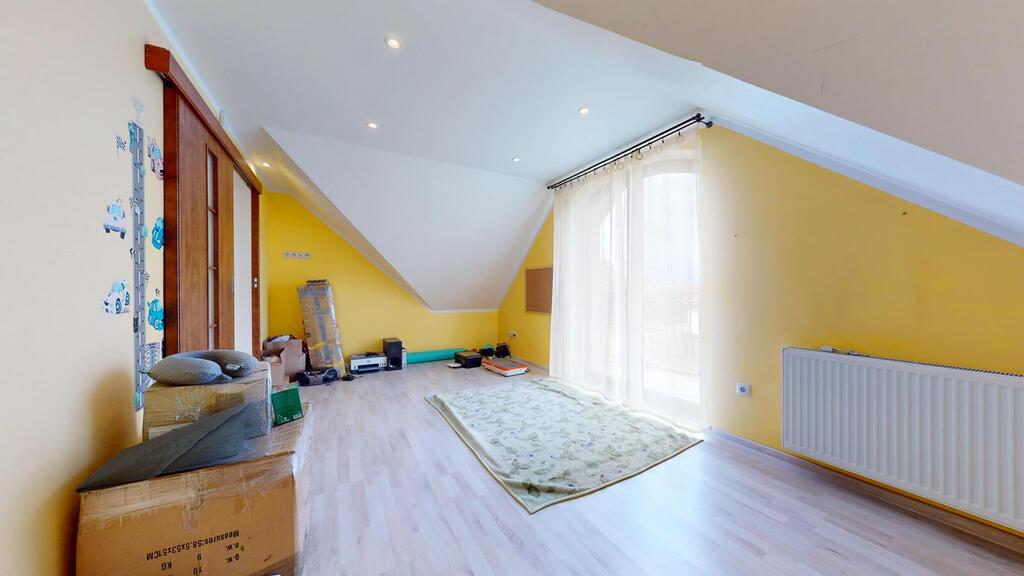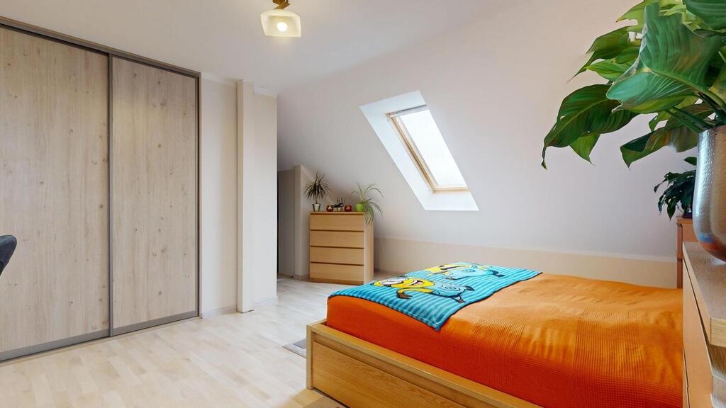 A detached house, situated in a charming location, the plot borders the NATURA 2000 area. Regular plot with a beautifully landscaped garden, with automatic irrigation, fully fenced. The house consists of: ground floor with: – spacious living room, – open kitchen, – toilet, – hall, – single garage, – boiler room. On the first floor: – 3 rooms adjustable, – large bathroom, – hall. An additional advantage is the developed, heated attic. The house has amenities in the form of photovoltaic panels, an alarm, electric roller shutters. Heating at the moment from a pellet stove, gas is on the way, you can change to gas heating. I recommend it due to the layout and standard of the house. I invite you to the presentation.