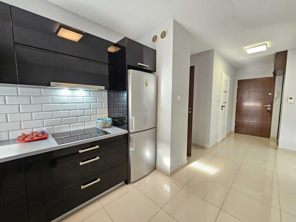 This 2-room, 46.6m² apartment is located on the 2nd floor of a multi-family building with an elevator, built in 2012, in the Warszewo/Podbórz district. The apartment is in very good condition (walls need repainting) and includes an outdoor parking space for an additional PLN 25,000. It is possible to rent a parking space in the garage underneath the building for approximately PLN 400 per month. Layout: * 16m² room with sliding doors, with access to a large balcony of approximately 8m² * bedroom/children's room with a large wardrobe * kitchen with a window opening onto the hallway * bathroom with a bathtub, toilet, and sink * hallway with wardrobe * hallway access to the attic, which serves as a basement. The rooms have laminate flooring. The bathroom is finished with tiles and terracotta and was recently renovated a year ago. The kitchen is equipped with custom-made cabinetry and equipped with appliances (fridge, induction hob, oven, and extractor hood). There's no dishwasher, but the cabinets are designed to accommodate a 45cm dishwasher. The wooden windows are in good condition. The living room has air conditioning with a heating function. The rent is 560 PLN for 4 people. Heating and hot water are provided by the municipal heating system. Public parking spaces are available next to the building. The apartment is located very close to Żabka and Biedronka stores. Access to the city center (a 15-minute drive to Galaxy) and a clinic is very convenient. A bus stop is just 300 meters away, and the Wkrzańska Forest is close by. Numerous nearby paths and bike trails encourage active leisure. A very large playground with a playing field, paths, and benches is available to residents. This offer is particularly interesting for couples, but also for families with several children. The move-in date is negotiable.