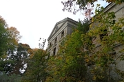 It was designed on a plan roughly resembling an elongated rectangle, measuring 3510 x 1610 cm, with the front facing the park. In the center of the front wall is a distinct projection measuring 810 x 230 cm, and in the center of the gable is a square tower. At the western corner are wings measuring 850 x 350 cm, terminating in a five-sided projection.