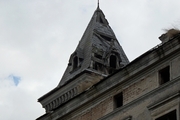 The roof was damaged, the wooden ceilings collapsed, the staircases were damaged, and the windows, doors, and furnishings were missing.