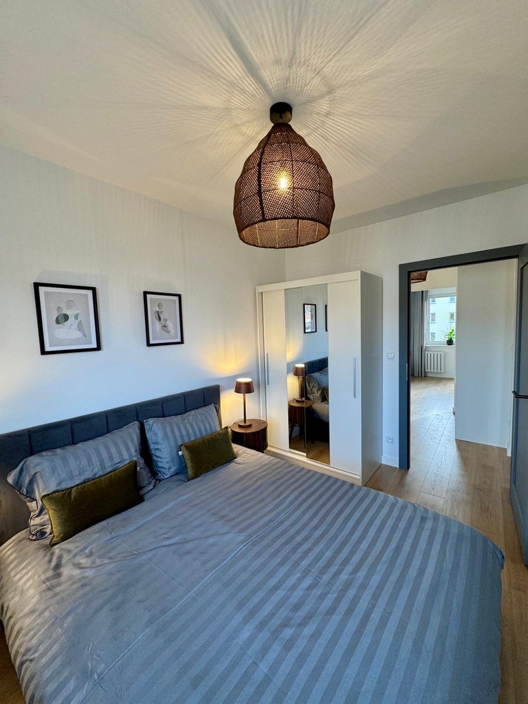 This unique offer includes a beautiful and functional, renovated apartment, fully furnished and equipped. The apartment includes a furnished living room with a balcony, a furnished bedroom, a bedroom, a fully furnished kitchen with appliances (refrigerator, stove, dishwasher, oven, and hood), a bathroom with a shower cabin, a utility room (laundry room), and a hallway. A basement of approximately 6 square meters is also available. The property boasts a great location, a safe neighborhood, and excellent transport links to the rest of the city. No encumbrances, available immediately. We recommend it.