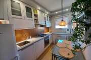 The apartment has undergone a comprehensive, meticulous renovation using high-quality materials. All installations have been replaced, new plaster and finishing coats have been applied, and the walls have been painted in light, elegant shades. New PVC windows, a burglar-proof entrance door, interior doors, and aesthetically pleasing flooring have been installed. The bathroom and separate toilet have been completely renovated, finished with new tiles and terracotta, and equipped with white goods. The kitchen features custom-built units and appliances. All furniture, except for the living room, is included in the price, allowing you to move in immediately, with complete convenience and without additional costs.