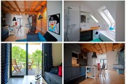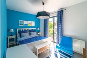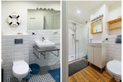 On the first floor there are two apartments with an area of approximately 35 sq m each , consisting of a tasteful bedroom with a double bed and an extra bed, a spacious and bright living room with a corner sofa with sleeping function for another 2 people, a kitchenette with a dining area, and a bathroom with a shower.