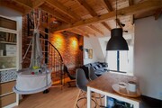 On the second floor, you’ll find two superior apartments, each with a mezzanine-level bedroom , providing a much larger living space and a bathroom with a bathtub and shower. The fully equipped kitchen even includes space for an oven and microwave. Each apartment measures approximately 35 square meters on the lower level, plus nearly 40 square meters on the mezzanine.