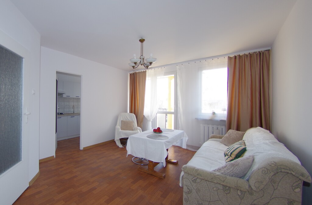 First-floor apartment with a balcony. Partially furnished. The apartment includes: a well-arranged room, a separate, bright kitchen (new cabinets, gas hob, dishwasher, refrigerator), a bathroom with a toilet (bathtub, washing machine), and a hallway. Nearby shops include: Castorama, CH Ster, Biedronka, a grocery store, Lidl, and primary and secondary schools. Heating and hot water are provided by the municipal network. A reliable tenant (preferably single or a couple) is required. Keys are in the office. Please come and see us.
