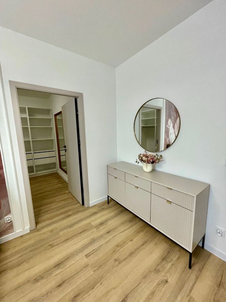 For rent, a brand new 4-room apartment with a balcony is located on the fourth floor of an apartment building (built in 2025) near the Old Town, Łasztownia, and the Oder River. The total area of 69 m² consists of: – a living room with a kitchenette and access to a spacious terrace, – a bedroom with a double bed, – a large walk-in closet off the bedroom, – a children's room, – a bathroom with a toilet and a shower. The apartment is finished to a high standard in a tasteful, modern style. The walls are smooth and painted, and the floors are high-quality laminate. The spacious bathroom is equipped with a glass-enclosed, threshold-free shower, toilet, sink, and washing machine, among other amenities. The kitchen, which is a kitchenette in the living room, features modern custom-made units with built-in appliances, including a refrigerator, dishwasher, oven, and induction cooktop. The hallway features a large built-in wardrobe and ample storage space. The apartment is furnished: sofa beds in the living room and bedroom. A double bed in the bedroom, a double sofa bed in the living area, two TVs, a TV chest, a dining table, a desk, etc. The living room is air-conditioned. Additionally, it is possible to rent two parking spaces in the underground garage for PLN 500 per month. Rent: PLN 4,500 per month. Utility fees: approximately PLN 1,100 per month (rent includes advance payments for heating, hot and cold water), and electricity based on usage. Additional costs such as TV and internet are subject to individual agreement with the tenant. Occasional leases are preferred, with the initial 12-month lease being extended. A security deposit of two months' rent is required. The apartment has windows facing two sides of the building. The balcony overlooks the interior patio located on the third floor of the building, and the bedroom offers a view of the Chrobry Embankment and the Oder River. Public parking spaces are available in front of the building. The building itself has a quiet elevator.