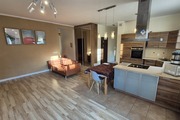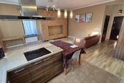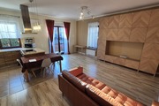A comfortable apartment for rent in Warsaw's most beautiful residential complex, "Garden House." The gated community is monitored and available to residents, with a children's playground and a fitness room (free of charge for residents and tenants). It is close to public transportation and shops. The building is accessible to the disabled (elevators to all levels, including the garage). The apartments are 290 cm high, ensuring comfort and a sense of space. The complex boasts abundant greenery and is set back from traffic. The apartment is located on a raised ground floor and measures 73.90 m², comprising: – a large living room with a kitchenette (37 m²) and balcony access – a bedroom (14.10 m²) – a room (10.10 m²) (unfurnished) – a bathroom (5 m²) – a utility room with a washer-dryer (2.6 m²). The apartment features two very large and spacious built-in wardrobes (one in the bedroom and the other in the hallway). The living room features new Besta cabinets that reach almost to the ceiling, providing ample space and a TV. A modern kitchen with ample cabinetry and appliances (dishwasher, refrigerator, induction cooktop). The living room features Daikin air conditioning (heat pump – can also be used for heating). Remote-controlled electric blinds are installed throughout the apartment. A practically new Electrolux washer-dryer and additional shelves and a shelving unit are located in the utility room. The apartment comes with one parking space in the garage under the building, with an already installed electric car charger. This space is available for only 300 PLN/month (a second space can be rented for an additional fee). Parking spaces are also available for residents behind the gate (first-come, first-served basis). Tenants also cover: administrative fees (783.46 PLN including heating but excluding water (advance payment based on the number of occupants), electricity, and internet. A security deposit of 7000 PLN is required. The minimum lease term is one year. We invite you and recommend you stay.