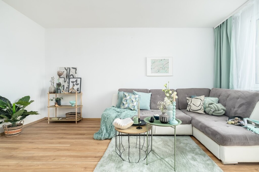 - The apartment is bright and spacious – thanks to large windows and a functional layout