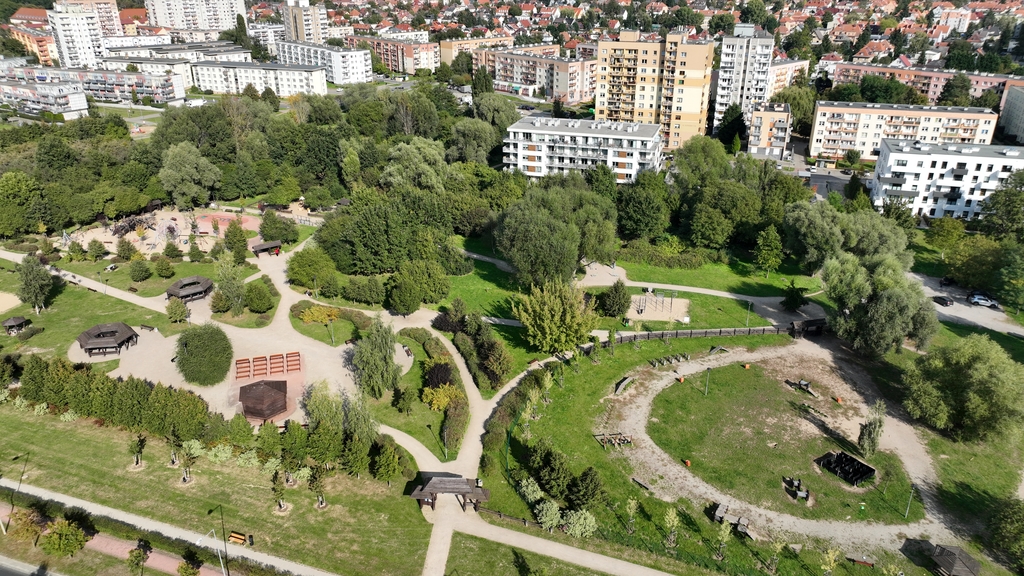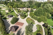 A new park has been built near the estate, featuring walking paths and barbecue shelters . There are also soccer , volleyball, and basketball courts , ping-pong and chess tables, a children’s playground , and a fenced dog run .