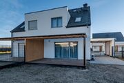 Luxurious, finished house priced at PLN 1,099,000 net. Trzęsacz, Baltic Garden II Estate, 400 m from one of the most beautiful beaches on the Baltic Sea. This semi-detached house sits on its own 300 m² plot (separate property with land and mortgage register). The total area of the house is 79.38 m² plus a brick carport. On the ground floor there is a 31.89 m² living room with a kitchenette and access to a covered terrace, a toilet with a shower (3.12 m²), a hallway (3.25 m²), and a utility room (3.02 m²). On the first floor, with a total area of 37.63 m², there are three bedrooms and a bathroom with a window. Additionally, there is an unused attic space that could be developed. A large, landscaped garden. The estate is fully fenced and developed (internal roads and communal parking are paved, with an entrance gate and lighting). Building finishing standard – turnkey. Exterior house finishing: – foundation – reinforced concrete slab – exterior walls made of aerated concrete – 15.00 cm polystyrene insulation – silicate/silicone plaster – PVC windows (triple-glazed), electric external blinds, roof windows (without blinds) – reinforced exterior doors – cement roof tiles – sheet metal flashings – complete fencing, brick shelter with roof and wooden elements – driveway and entrance to the house paved with concrete blocks – partially covered wooden terrace – garden – landscaped, grassed – utilities connected to the building (water, electricity, sewage, internet – fiber optic) Interior house finishing – turnkey standard: – walls – putty, washable paint – floors – vinyl panels – internal winder stairs, reinforced concrete with wood – electrical installation including: installation of accessories, lighting, IT connection, alarm system, intercom, 2 TV sockets – Conduits run to the roof for a photovoltaic installation, – heating system includes: underfloor heating – on the ground floor and in both bathrooms, convection heaters in the upstairs rooms, ladder radiators in the bathrooms, and an air-source heat pump with air conditioning, – fully equipped built-in kitchen (fridge, dishwasher, oven, induction hob, hood), – built-in wardrobes in the bedrooms, – curtain rods and curtains (external blinds) in the windows, – built-in fireplace, TV cabinet in the living room, – access to the terrace (relaxation area) from the living room. The very high standard of finish, functional design, and location create a wonderful comfort zone for relaxation and rental services. I invite you to viewings. *PLN 19,000 net – price for a share in a fully developed road plot. *23% VAT must be added to the asking price. It is possible to recover the entire VAT, including for foreigners!!! We assist with the refund procedure.