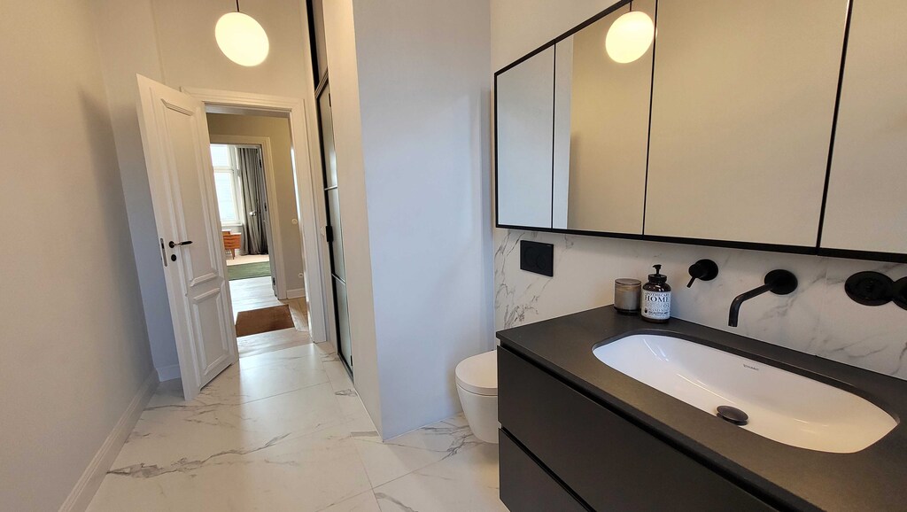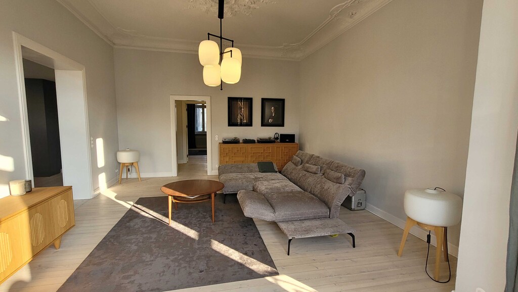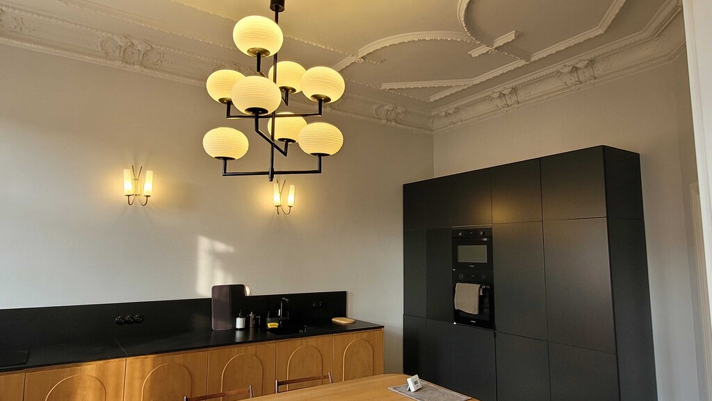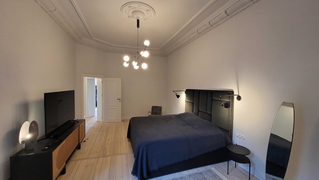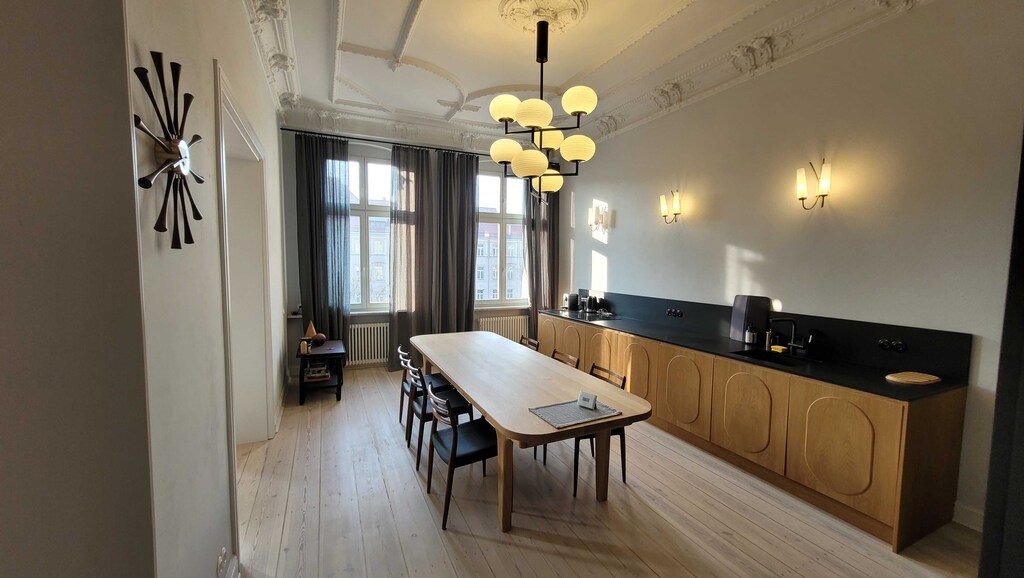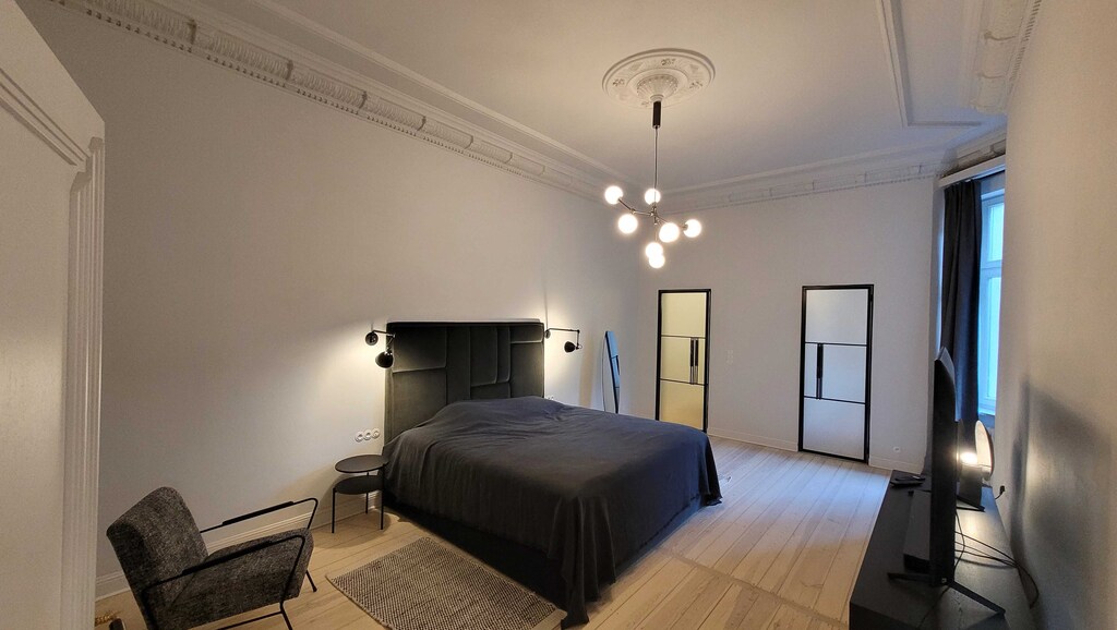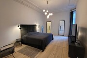 Unique, designer apartment on Jana Pawła II Avenue – 166.61 m² | 5 rooms | balcony | completely renovated. For sale, this spacious, stylish apartment is located on the 2nd floor of an elegant, late 19th-century tenement building, located on one of Szczecin's most beautiful avenues – right next to Jasne Błonia. The apartment has undergone a comprehensive renovation, including a partial remodeling of the room layout, restoration of the historic floors and stucco, and the installation of new door joinery and designer furnishings. Property parameters • Area: 166.61 m² • Floor: 2 (2nd floor) • Number of rooms: 5 + kitchen + 2 bathrooms – master bedroom – 2 children’s rooms – wardrobe / room to be arranged – living room • Balcony: on the alley side • Basement: 15.49 m² Finishing standard • Floors: original parquets / boards – renovated, sanded and whitened • Windows: wooden – replaced during the renovation • Walls: traditional plaster, restored stucco • Doors and interior joinery • Steel door joinery – made by Metal Madness • Custom-made furniture – Woodmaker, Woodeffect Heating • Gas etagene installation • The entire heating installation was replaced during the renovation Fees • PLN 481.84 Equipment The price includes: ✔ kitchen furniture ✔ permanent furniture and wardrobes ✔ built-in furniture ✔ washing machine Other furniture, lighting, lamps, decorations and accessories – negotiable. The interior features unique vintage elements and designs by Niels Otto Møller, Eero Saarinen, Georg Nelson, Joe Colombo, Alvar Aalto, Hans J. Wegner, and Bill Curry, among others. Location: • A prestigious avenue in the city center • Close to Jasne Błonia and green spaces • A tenement house with a historic atmosphere