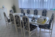 The property offers nine spacious rooms, two bathrooms, and two separate toilets, ensuring comfort even for a large family. The impressive living room with a fireplace is the heart of the home – spacious, full of light, and with access to a large terrace, it’s perfect for relaxing and gathering with loved ones.