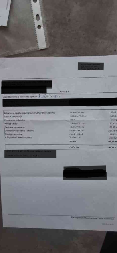 Administrative rent: 749 PLN