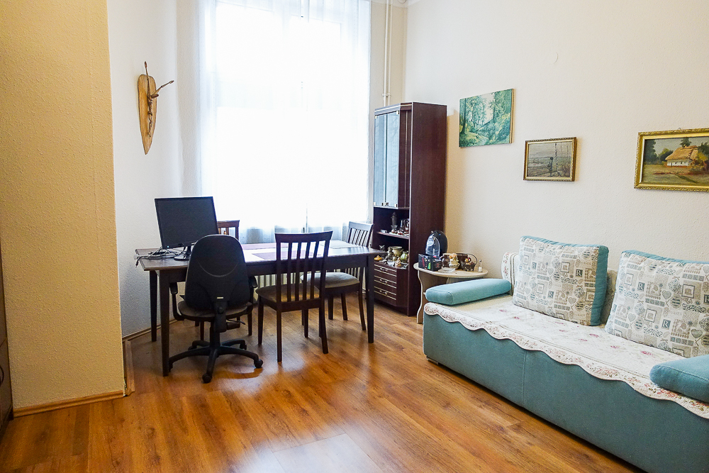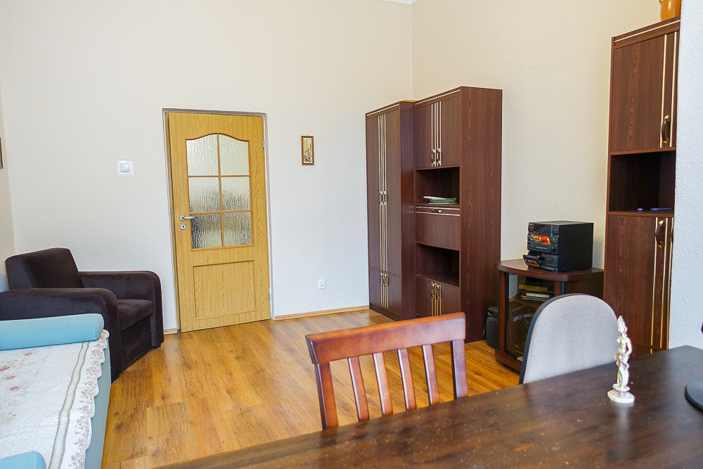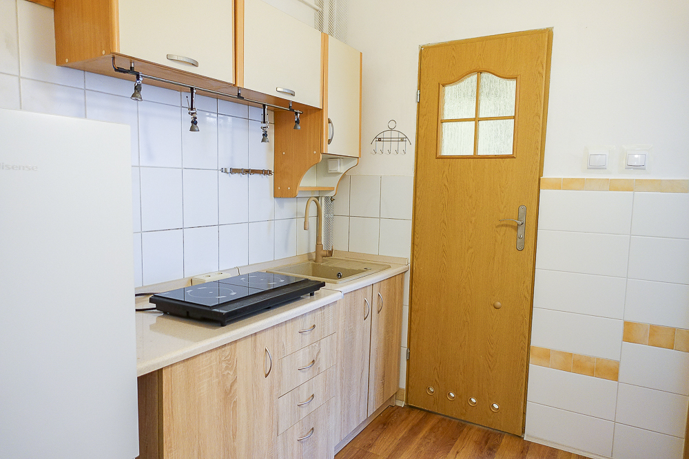 Two-room, spacious, furnished apartment with an area of 32.25 m² located on the first floor of a pre-war building at Lotników Square in Szczecin. Originally a studio apartment, the rooms are 17.7 m² and 8.1 m², furnished. The bathroom has been renovated and has a bathtub, sink, washing machine, and 3 m² toilet. The 4.5 m² kitchen, separated from the hallway, features a two-burner induction hob, sink, and furniture. The kitchen was originally located in a smaller room and then moved to the hallway. The hallway is 4.6 m². The apartment's ceiling height is 3.69 m, with only the hallway section having a lowered ceiling of 2.7 m. The apartment includes a 3 m² basement. RUNNING COSTS: PLN 630 for the property manager, plus electricity and gas. UTILITIES: Municipal heating, hot water from a gas boiler (the boiler is new, but the community plans to replace it with municipal hot water). The building was insulated and insulated in 2017. PVC windows face south. Burglar-proof entrance doors and new interior doors are standard. Entrance to the building is through a gate and a well-kept courtyard. Parking is available in the courtyard, but no assigned space is available. The neighborhood is very favorable. The KASKADA Gallery is a 3-minute walk away, and the Philharmonic, Contemporary Theatre, and Pomeranian Dukes' Castle are a short walk away. Public transportation is available via tram lines 2, 3, and 10 at nearby Żołnierza Square, and 1, 11, and 12 at Grunwaldzki Square. One tram stop to Brama Portowa and the other direction to Rodła Square, and three tram stops to the Main Railway Station. Good access to all universities. The apartment is available immediately. Excellent rental location.