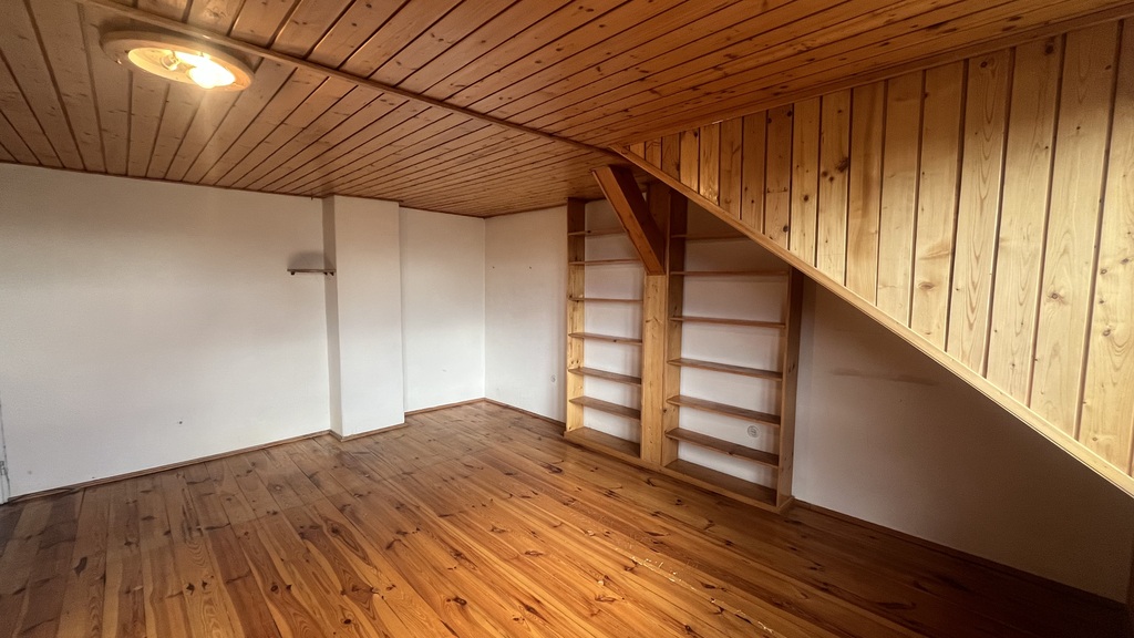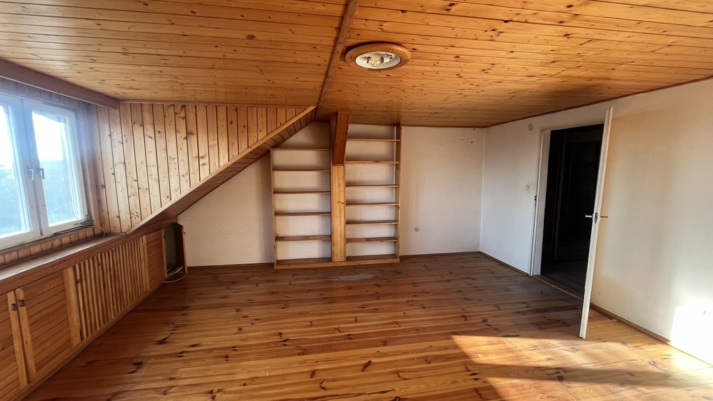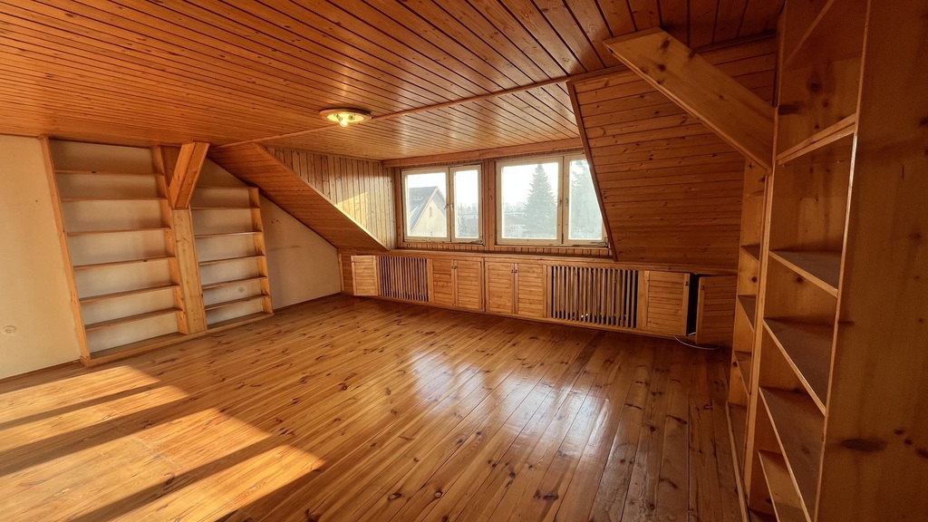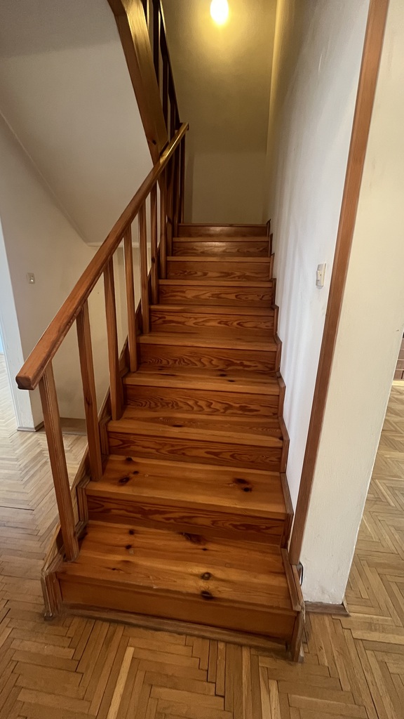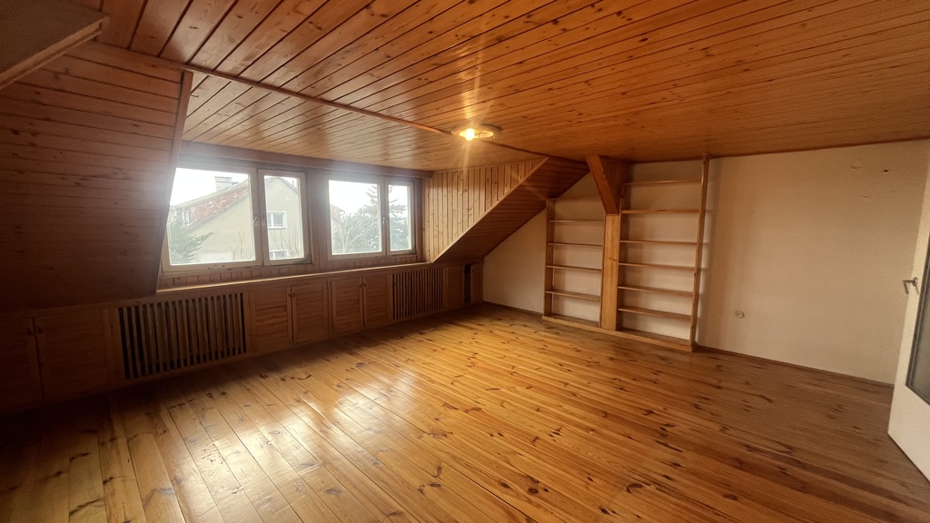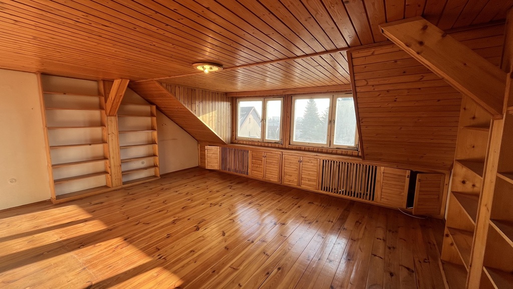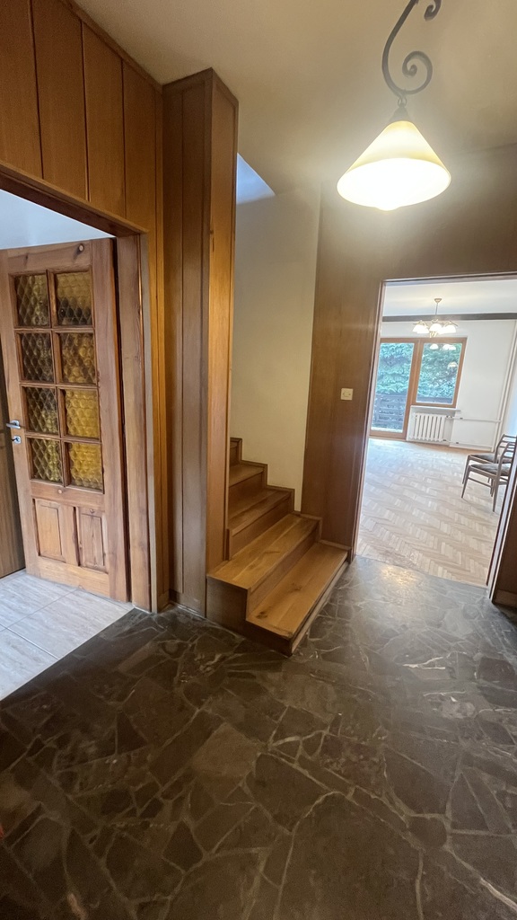 For sale is an attractive terraced house located in a quiet part of Gumienice. Price is negotiable. The house was designed by renowned architect Zbigniew Abrahamowicz. It features a basement with a usable attic (the basements are developed), and the ground floor also includes a large garage of approximately 20m². The ground floor features a spacious living room with access to a large, sunny terrace overlooking the garden. The living room features a fireplace, oak parquet floors, and smooth, painted walls. A separate kitchen with custom-built cabinetry and a toilet (accessible from the kitchen to the basement). Upstairs, there are three bedrooms (two with balcony access) and a spacious bathroom with a window and a separate toilet. The attic features a spacious room overlooking the garden and two rooms that could be converted into bedrooms. The wooden windows are new and in very good condition. The basement includes a utility room and a boiler room. The building also includes a garage of approximately 20m². The roof is covered with ceramic tiles and has gas heating. The 200 m² plot is abundantly planted. It's conveniently located in a quiet neighborhood. The city center is 10 minutes away, and the bus stop is 100 meters away. Nearby are primary and secondary schools and the STER shopping center. The house is well-maintained and creates a pleasant impression. It's a great location! I highly recommend it and invite you to check out the offer!