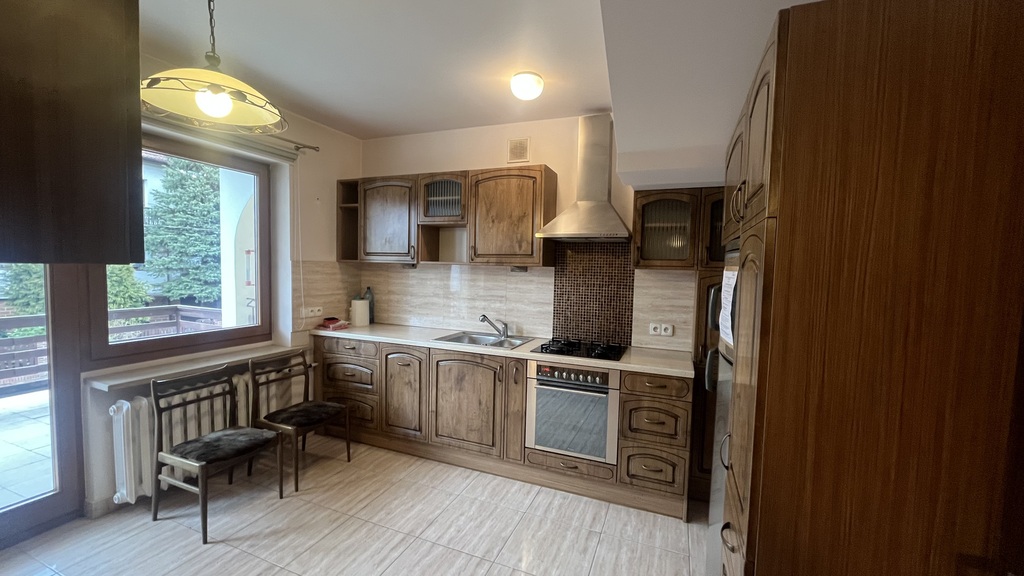 For sale is an attractive terraced house located in a quiet part of Gumienice. Price is negotiable. The house was designed by renowned architect Zbigniew Abrahamowicz. It features a basement with a usable attic (the basements are developed), and the ground floor also includes a large garage of approximately 20m². The ground floor features a spacious living room with access to a large, sunny terrace overlooking the garden. The living room features a fireplace, oak parquet floors, and smooth, painted walls. A separate kitchen with custom-built cabinetry and a toilet (accessible from the kitchen to the basement). Upstairs, there are three bedrooms (two with balcony access) and a spacious bathroom with a window and a separate toilet. The attic features a spacious room overlooking the garden and two rooms that could be converted into bedrooms. The wooden windows are new and in very good condition. The basement includes a utility room and a boiler room. The building also includes a garage of approximately 20m². The roof is covered with ceramic tiles and has gas heating. The 200 m² plot is abundantly planted. It's conveniently located in a quiet neighborhood. The city center is 10 minutes away, and the bus stop is 100 meters away. Nearby are primary and secondary schools and the STER shopping center. The house is well-maintained and creates a pleasant impression. It's a great location! I highly recommend it and invite you to check out the offer!