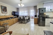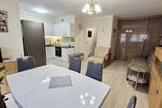 This very attractive, sunny, and spacious one-bedroom apartment is located on the second floor of an insulated brick building built in 2004. The apartment comprises a living room with a kitchenette and balcony access, a hallway, and a bathroom with a toilet. The walls are smooth and painted. A built-in wardrobe is in the hallway. The floors are solid wood. The kitchen is equipped with built-in appliances (electric oven with electric hob, refrigerator, and dishwasher). The apartment is very functional and very well-lit. The price includes kitchen furniture with appliances and two built-in wardrobes, as shown in the photos. The building is managed by SM “Odra.” A cellar belongs to the apartment. Nearby, there is a school, kindergarten, shops, and public transportation. I invite you to a viewing.