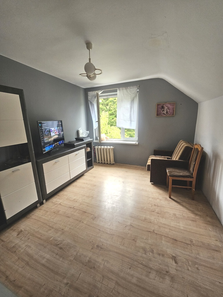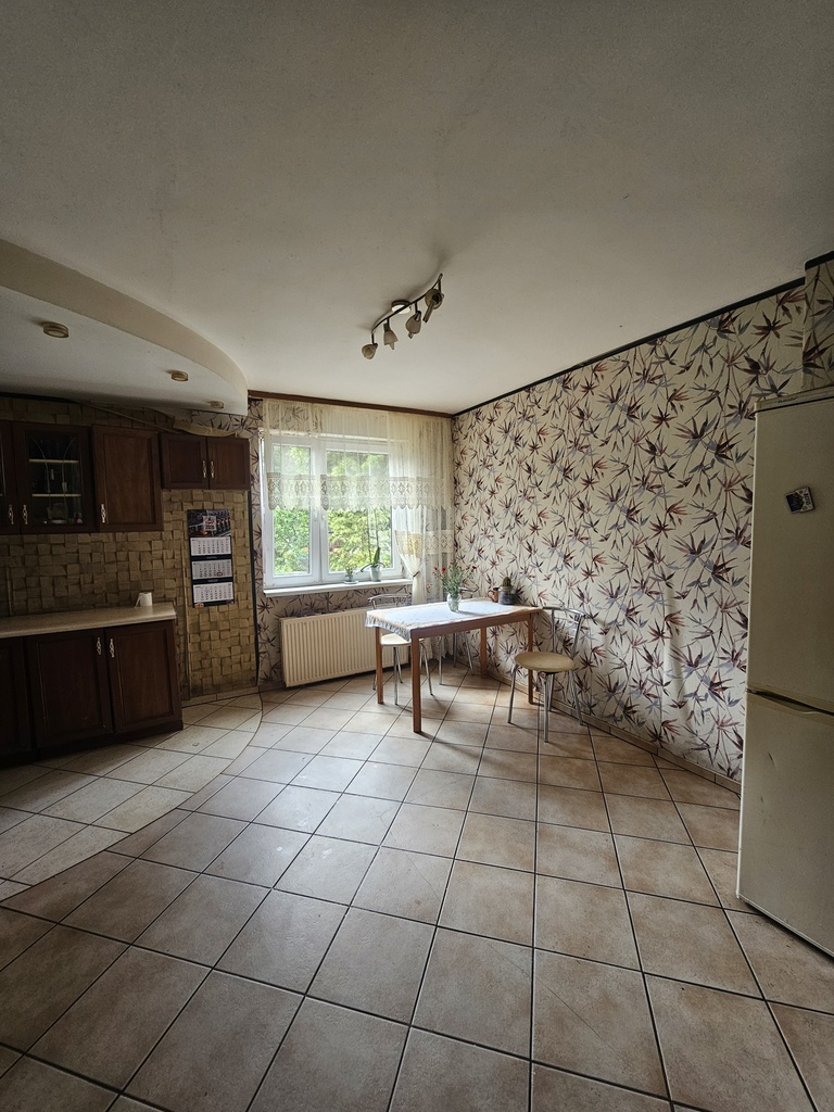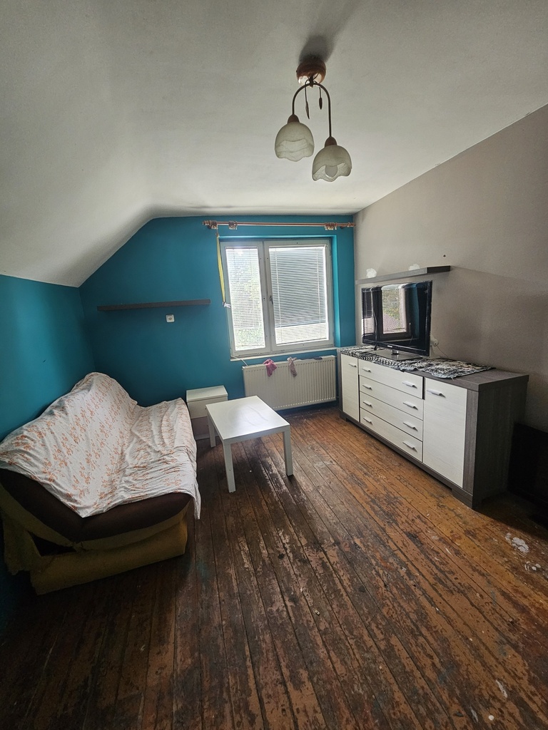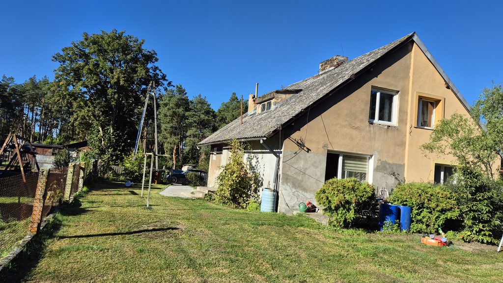 A house near the forest is located in Pucice on Lipowa Street. The sale is for half of the house, with a total area of approximately 100 m² (usable area: 76.68 m²). The house requires renovation. On the ground floor, there is a living room with access to the terrace and garden, a kitchen, a bathroom, and a hallway. The attic offers two rooms. There is a fairly large basement with a wood-burning stove. Hot water is electrically heated. The biggest advantage of this property is its location: a quiet street, and the garden borders a forest. The owner owns a 50% share of the 494 m² plot across the road. The delivery date is negotiable.