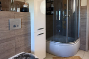 The heart of the house is the spacious living room with a fireplace , perfect for any winter evening. Extensive windows lead directly to the garden – the north-east entrance provides pleasant cooling on hot days, while the property itself surrounds the house on three sides (south, east, and north), providing sunlight where you need it.