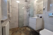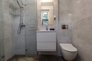 * bathroom with shower and toilet.