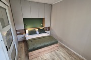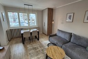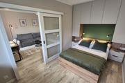 For rent, this exceptionally aesthetic and functional 44.9 m² apartment is located in the very center of Szczecin on Bazarowa Street. The apartment has been designed with meticulous attention to detail – natural materials, consistent colors, and custom-made built-ins dominate, ensuring comfort and maximum use of space. Another major advantage is the apartment's ground floor location (no road in front of the windows, quiet, green, and peaceful), yet still in the city center. The apartment layout: living room with seating and dining areas, separate bedroom with ample built-in furniture and ambient lighting (sliding doors separating the apartment zones), fully equipped kitchen, modern bathroom with shower, hallway with spacious wardrobes. A separate work space (desk by the window) is an additional advantage. Standard and amenities: The apartment has undergone a complete renovation, with custom-made joinery (bedroom, kitchen, hallway), fully equipped with household appliances: oven, hob, dishwasher, refrigerator, and washing machine. A modern bathroom with a shower and toilet with modern lighting is ready for immediate occupancy. A small basement is also available (suitable for bicycles, etc.). Location: The very center of Szczecin – everything is within a few minutes' walk: the Galaxy shopping center, public transportation (trams, buses), shops, restaurants, gyms, green areas, and walking areas. The apartment is located on a quiet street with a view of the greenery. Additional costs: 1. administrative fees: approximately PLN 410 (with a prepayment for heating), 2. cold and hot water, and garbage disposal (prepayments depending on the number of people), 3. electricity according to consumption (you will have your own contract), security deposit: PLN 4,500. Suitable for: Ideal for a single person or a couple who value comfort, aesthetics, and a great location in the city center.