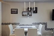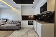 Custom-built with high-quality built-in furniture, it is fully equipped with appliances: induction cooktop, oven, refrigerator, dishwasher, and microwave.