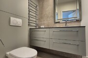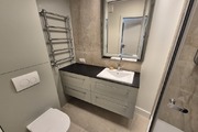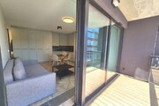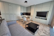 The apartment we offer is located on the first floor. It has 45.74m2 of area and a large 8m2 balcony. The windows face south, which, with large panoramic windows, provides plenty of daylight. The living room with kitchenette is 21m2 of beautifully furnished space with custom-made furniture. Every centimeter of space is fully utilized. The kitchen has all the necessary equipment: fridge, dishwasher, oven with microwave, washing machine and dryer. The 15m2 bedroom is a place where you can comfortably relax. This room has been furnished with a comfortable double bed, a large built-in wardrobe and an office for work. The 4.21m2 bathroom with toilet has a shower cabin and a washbasin. The tenant has a parking space in the garage under the building for 1 car.