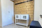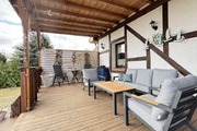 The covered veranda is one of the greatest assets of this property — spacious, fully roofed with a wooden structure and accessible directly from the living room through glazed doors. A space made for outdoor living: garden furniture invites you to relax, atmospheric lighting sets the mood through the evening, and the roof keeps you sheltered regardless of the weather. Morning coffee with a lake view, dinner at sunset — the terrace seamlessly connects the interior with the garden and extends the outdoor season far beyond what you’d expect.