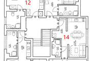 * 1- or 2-room apartments, with a kitchenette and bathroom, some with a balcony (no. 5 and 6) or a mezzanine (no. 13) and one with a garage built into the building (no. 4)