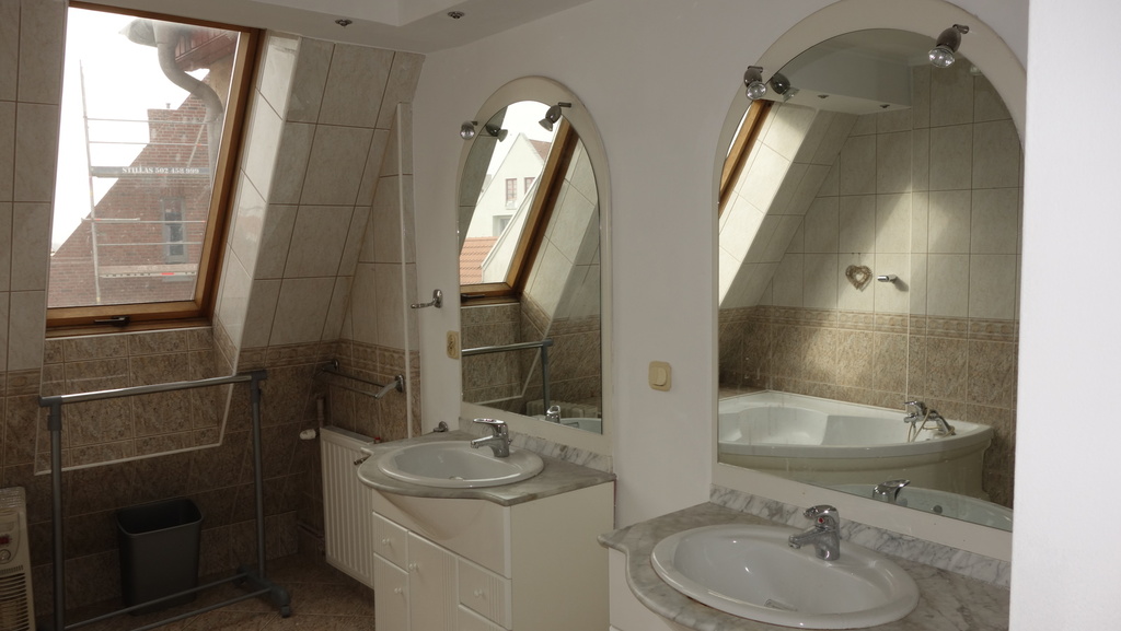 Currently, the apartment is empty, the walls are painted white, new panels are installed in a shade of gray. A three-level apartment in the Old Town, located in a new, brick tenement house built in 2001. The building has an elevator and its own, independent boiler room, from which hot water and heating are provided. The total area of the apartment is 138m2, usable area – 107.46m2. On the first level there is a spacious living room with a kitchenette with an area of almost 51 m2, from which, thanks to a sliding door, you can separate a separate room and a bathroom with a toilet. The kitchenette is approximately 13m2. In the kitchen, panels on the floor and a glaze apron on the wall. The bathroom is also tiled and terracotta, with a shower cubicle, a toilet and a washbasin. Access to the upper levels via wooden stairs. On the first level, there are 2 rooms with commander type buildings in the bedroom and a bath room consisting of a vestibule (washbasin, toilet and bidet) and a bathroom with a corner bathtub and washbasins. On the same floor there is also a utility room serving as a laundry room. On the third level there is a spacious room with a wardrobe. The apartment certainly has enormous potential, and the location within Podzamcze makes it extremely attractive. I cordially invite you to the presentation. The price includes kitchen furniture, the execution of which has been commissioned and is at the implementation stage.