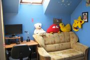 Poddaszowe bedroom apartment with adaptation of the third room on the second level (new window skylights, regipsy). Lounge with a kitchenette with cabinets to size). Windows new skylights from the living room and a smaller room and bathroom, the kitchen traditional PVC. Large bathroom with the toilet in glazed and terracotta-toilet with a sink with glass blocks separated by a wall from the rest of the bathroom, where there is a large corner bath and shower. In the front room a Commander buildings wardrobe with mirrors. The floor panels. Regipsach painted walls in a Dulux paint. The apartment is located in a building about 150 meters away from the lake. Ideal for those who value peace and closeness to nature. Welcome replacement for kwalerkę or small M-3 in the Police.
