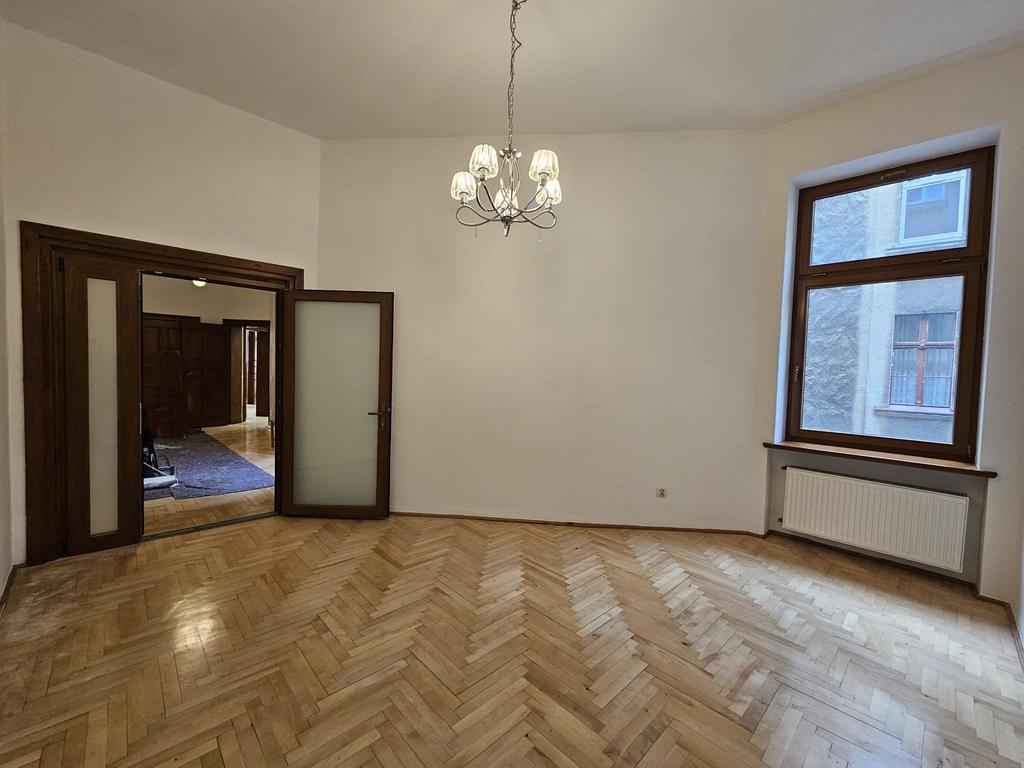 Apartment on one of the most attractive streets of Szczecin near Bogusław Promenade, currently serving as a residential or office space with 4 rooms (one walk-through): 26, 25, 19 and 16m2; toilet 6m2; kitchen 10m2. On the ground floors there are both service and catering premises. The premises have been refreshed and repainted. Exit to the balcony from one of the rooms. In the rooms there is parquet flooring, smooth painted walls, preserved stucco on the ceiling. Restored wooden interior doors, anti-burglary exterior doors. Separate kitchen with a window with nice kitchen furniture. Bathroom with toilet and washbasin in tiles and terracotta with a shower cabin. We enter the bathroom via a few steps. New wooden windows. Gate in good condition, after renovation. Additional fees: Rent approx. PLN 400 + electricity and gas meters. Heating and hot water heated by a second-circuit gas furnace. Quick delivery date. Deposit 5000 PLN. Minimum contract period of one year. We invite you!