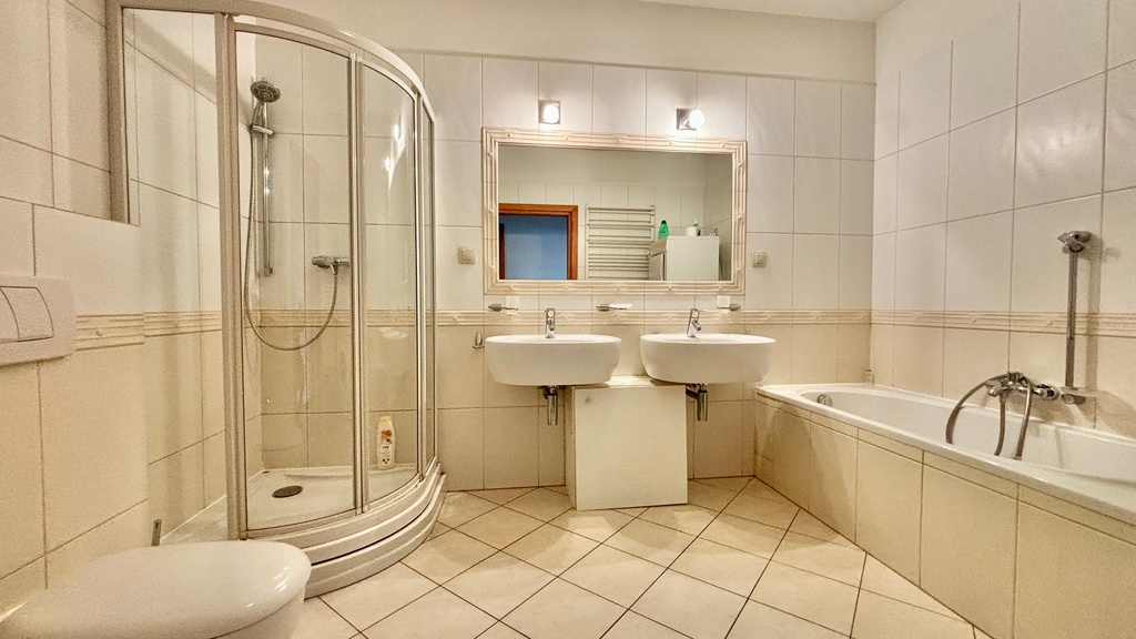 A two-level apartment located in an apartment building built in 2004. The building is located on the border of Pogodno, in a quiet place next to a park in a quiet part of the district. The two-level apartment is comfortably finished with an area of: usable area 168 m2, total area 180 m2, consisting of 5 rooms, 2 bathrooms, 1 toilet, large living room. The apartment is located on the 4th floor, private elevator with direct entrance to the apartment, staircase available only to residents of the apartment, fully equipped kitchen, large living room, 3 rooms, 2 bathrooms, and on the first floor 2 bedrooms with an adjacent bathroom. Access to the garage by elevator. There are tennis courts and a park nearby. The facility is guarded 24 hours a day. The apartment is partially furnished. Fixed fees: rent PLN 6,000 plus administrative rent (PLN 1,000) Variable fees: SEC, electricity, Rent PLN 5,000 + administrative rent (PLN 1,000) 1-month deposit, in case of furnishing, 2-month deposit. The apartment is available from May 1, 2024.