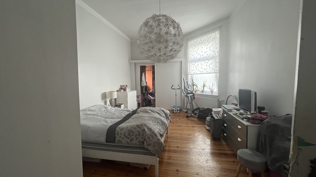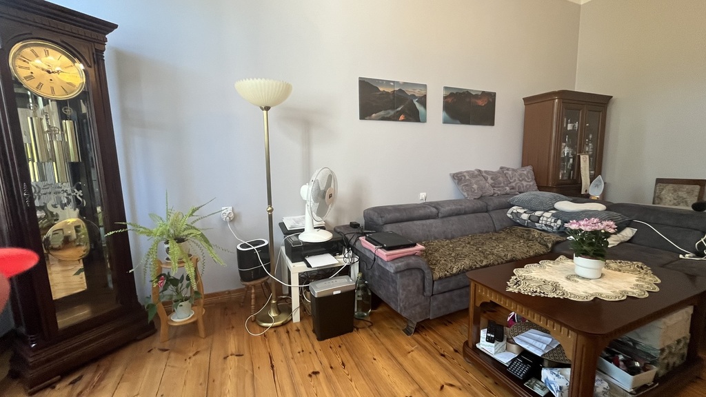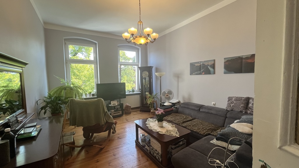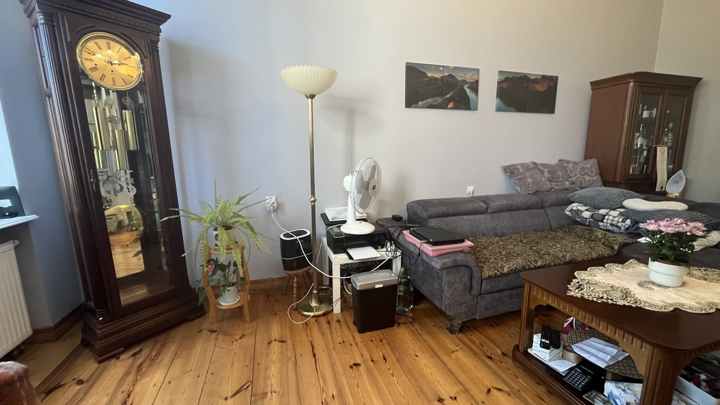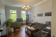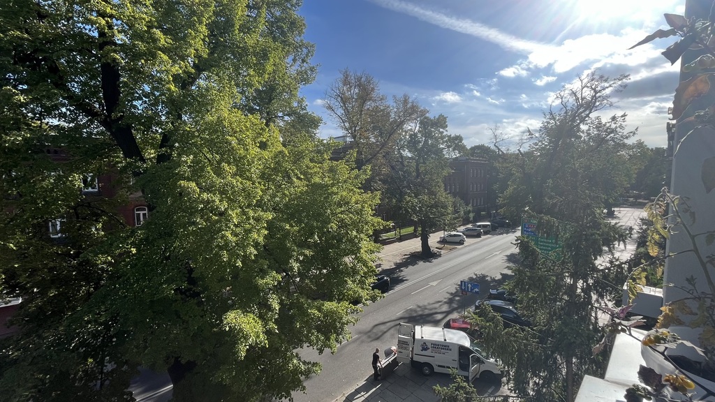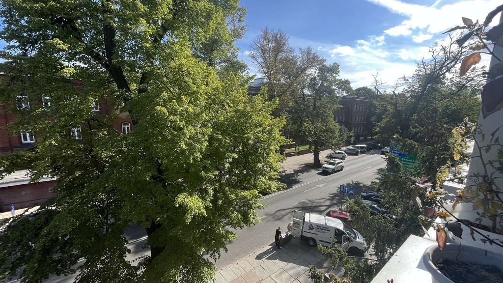 The apartment is located on the second floor of a tenement house – the staircase has been completely renovated, as well as the entire tenement house, a quiet place, lots of greenery. The apartment consists of four rooms and a fifth large wardrobe with a window of the area of 11m2, which can also be used as an additional room. The apartment consists of a large living room with an area of about 25m2, bedroom with an area 27m2, which is connected with a large wardrobe with a window, a room with a balcony of the area 15m2 and a spacious fourth room with an area of 20m2. A large, spacious kitchen with new kitchen furniture, which is included in the price of the apartment, including household appliances. The apartment has two bathrooms: one large with a window in a new glaze and terracotta with a bathtub with hydro massage and the other with a shower cubicle. There is also a second independent kitchen in the apartment. As the apartment has two separate bathrooms and kitchens, it can be very functional even for a family of two generations. The apartment is very well maintained and has undergone a general renovation: all installations in the apartment have been replaced, the walls are covered with plaster in pastel colors, the floors are original German sanded plank, the door woodwork is also original, new heating and radiators, etc. komandor. The rent is low, because with such a large area of 130m2 it is PLN 1,000 from PLN. The apartment has a very nice and pleasant atmosphere. I recommend and invite you.
