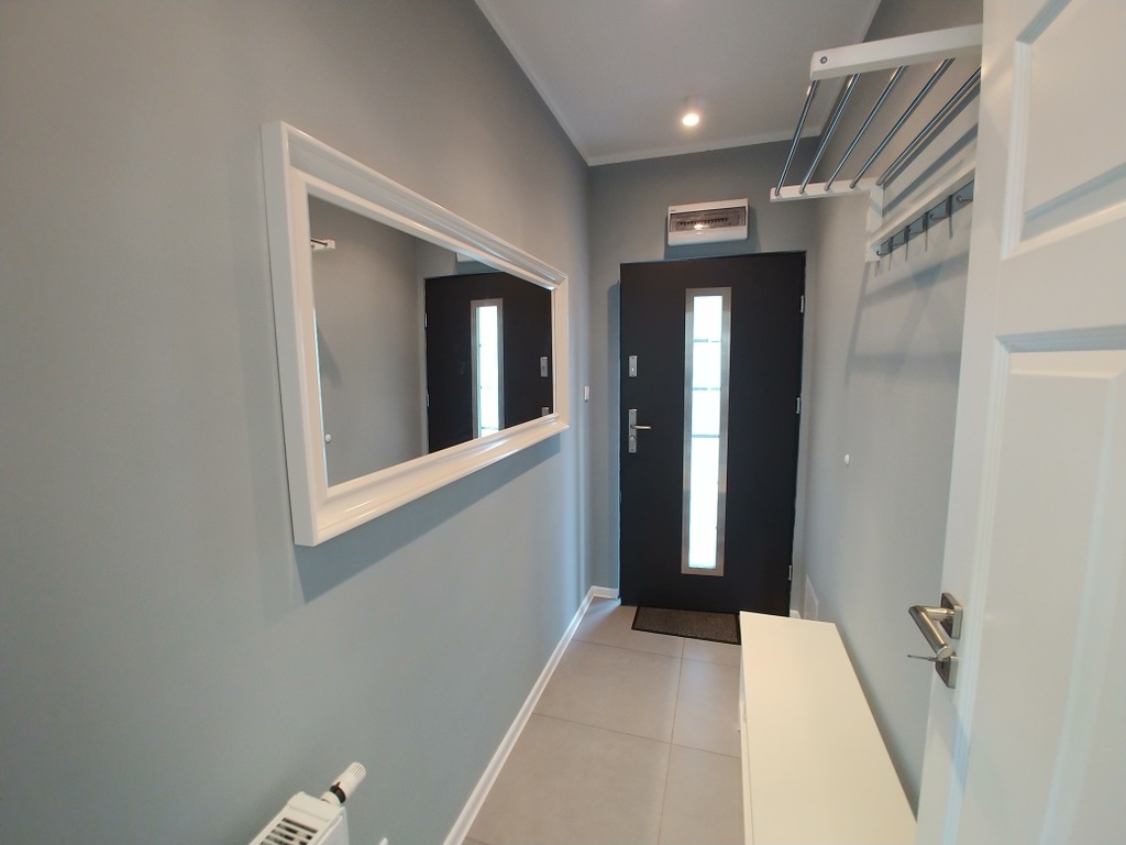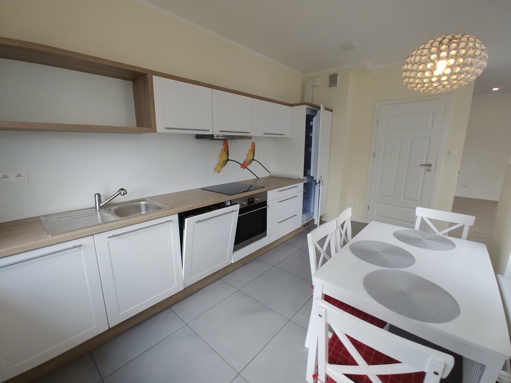 A comfortable, two-story, two-room apartment with a bright open-plan kitchen, a bathroom, and a toilet. A locked parking space for one car is available on the property for exclusive use. The apartment is rent-free. The apartment consists of a living room (laminate flooring, walls plastered white with Dulux/antique marble paint, and lamps), a kitchen with a window (built-in kitchen units, refrigerator/freezer, electric hob, electric oven, range hood, sink, and dishwasher), a spacious bedroom, a vestibule, a bathroom with a window (bathtub, shower, two sinks, and a toilet; a washing machine can be added), a balcony, and a toilet (with a toilet and a sink). Additionally, there's a vestibule and a shared garden downstairs for residents' use. Individual gas heating is provided by a Vaillant gas boiler. Additional fees include water, electricity, gas, and garbage disposal. Total utility fees are approximately PLN 800-1000 (lump sum billed quarterly). Available from December 15, 2025. Minimum rental period: 1 year. One-month deposit.