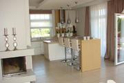 A large, stately one-story house designed individually at the request of the owners. The house has no basement with a separate 2-car garage, approx. 70 m2. Beautifully landscaped large plot of 3400m2, numerous shrubs and plantings, night lighting. The interior of the house arranged according to the interior designer, finished with high quality materials. Suspended ceilings, drywall and niches with halogen lighting throughout the house. The play of lights creates a unique atmosphere in the quiet evenings. The area of 218m2 consists of 3 large rooms, a living room connected to the kitchen in the form of a kitchenette, 2 bathrooms, vestibule, hall and laundry. Windbreak, hall and kitchenette in grinded gres. A large wardrobe in the vestibule – commander-type buildings. In the living room underfloor heating and a charming fireplace. Panels on the floor, walls in pastel colors. In the living room a large window exhibition with access to the terrace of about 20m2. In the kitchenette, around 16m2, kitchen furniture to size (varnished fronts). Full appliances: fridge, oven and built-in coffee machine, dishwasher, electric hob and high-quality hood. In the middle of the "island" with a barge and 4 seats. 3 rooms: 2 large 21m2 and 30m2, serving as a bedroom and a children's room, a smaller room 16m2 is a computer station + wardrobe (wardrobe commander). 2 bathrooms in bright tasteful glaze and terracotta: large 14m2 – in it: corner bath with hydromassage, exclusive shower with sauna, toilet, bidet and washbasin. 4.5m2 guest bathroom with shower, wc, bidet, washbasin. Utility room, laundry room with a modern Viessman II circulation oven. The house is beautifully situated among newly built residences, the front pillars and the garden add charm. Direct contact with a small lake at the disposal of several owners of neighboring properties affects the attractiveness of the offer. For security reasons, an alarm system has been installed for detectors, anti-theft blinds with an alarm, and infrared anti-panic barriers. A multi-hipped roof covered with "carp" tiles. 2-seater garage with toilet in terracotta. Entrance and garage door controlled by remote control. A unique house, one of a kind for a demanding customer. Due to the standard of finishing, a large plot and the location among newly built houses with access to the lake, an offer worth seeing and seeing. Welcome!