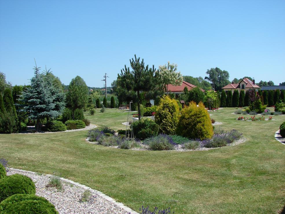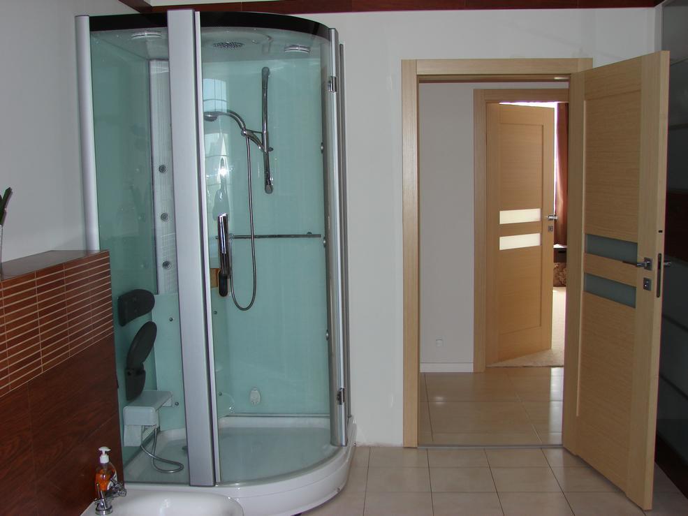 A large, stately one-story house designed individually at the request of the owners. The house has no basement with a separate 2-car garage, approx. 70 m2. Beautifully landscaped large plot of 3400m2, numerous shrubs and plantings, night lighting. The interior of the house arranged according to the interior designer, finished with high quality materials. Suspended ceilings, drywall and niches with halogen lighting throughout the house. The play of lights creates a unique atmosphere in the quiet evenings. The area of 218m2 consists of 3 large rooms, a living room connected to the kitchen in the form of a kitchenette, 2 bathrooms, vestibule, hall and laundry. Windbreak, hall and kitchenette in grinded gres. A large wardrobe in the vestibule – commander-type buildings. In the living room underfloor heating and a charming fireplace. Panels on the floor, walls in pastel colors. In the living room a large window exhibition with access to the terrace of about 20m2. In the kitchenette, around 16m2, kitchen furniture to size (varnished fronts). Full appliances: fridge, oven and built-in coffee machine, dishwasher, electric hob and high-quality hood. In the middle of the "island" with a barge and 4 seats. 3 rooms: 2 large 21m2 and 30m2, serving as a bedroom and a children's room, a smaller room 16m2 is a computer station + wardrobe (wardrobe commander). 2 bathrooms in bright tasteful glaze and terracotta: large 14m2 – in it: corner bath with hydromassage, exclusive shower with sauna, toilet, bidet and washbasin. 4.5m2 guest bathroom with shower, wc, bidet, washbasin. Utility room, laundry room with a modern Viessman II circulation oven. The house is beautifully situated among newly built residences, the front pillars and the garden add charm. Direct contact with a small lake at the disposal of several owners of neighboring properties affects the attractiveness of the offer. For security reasons, an alarm system has been installed for detectors, anti-theft blinds with an alarm, and infrared anti-panic barriers. A multi-hipped roof covered with "carp" tiles. 2-seater garage with toilet in terracotta. Entrance and garage door controlled by remote control. A unique house, one of a kind for a demanding customer. Due to the standard of finishing, a large plot and the location among newly built houses with access to the lake, an offer worth seeing and seeing. Welcome!