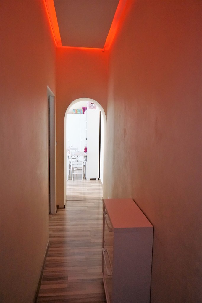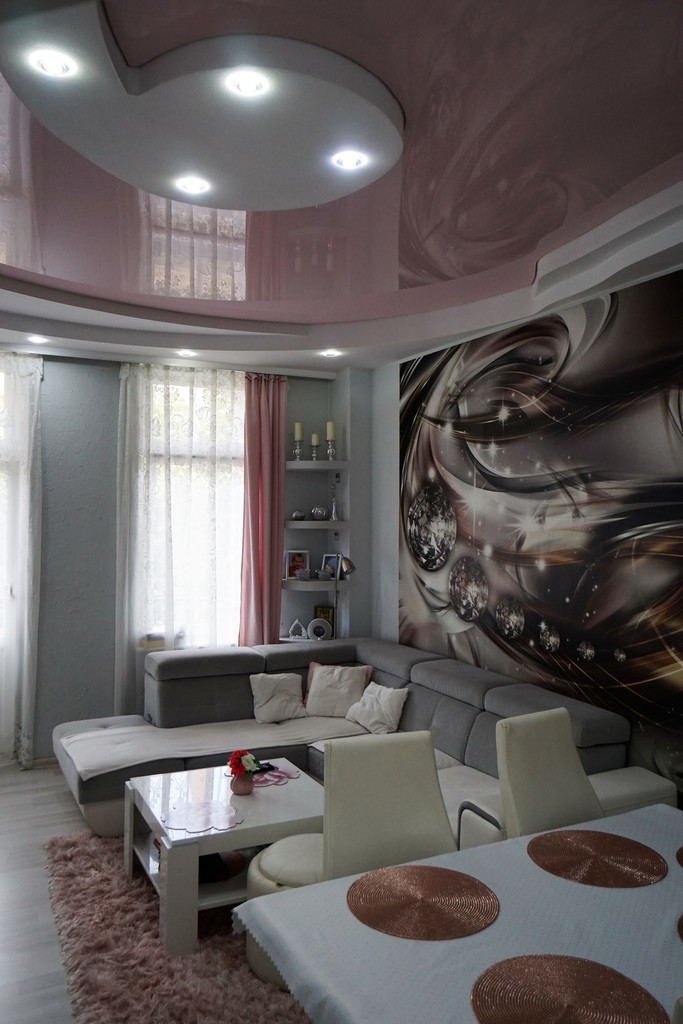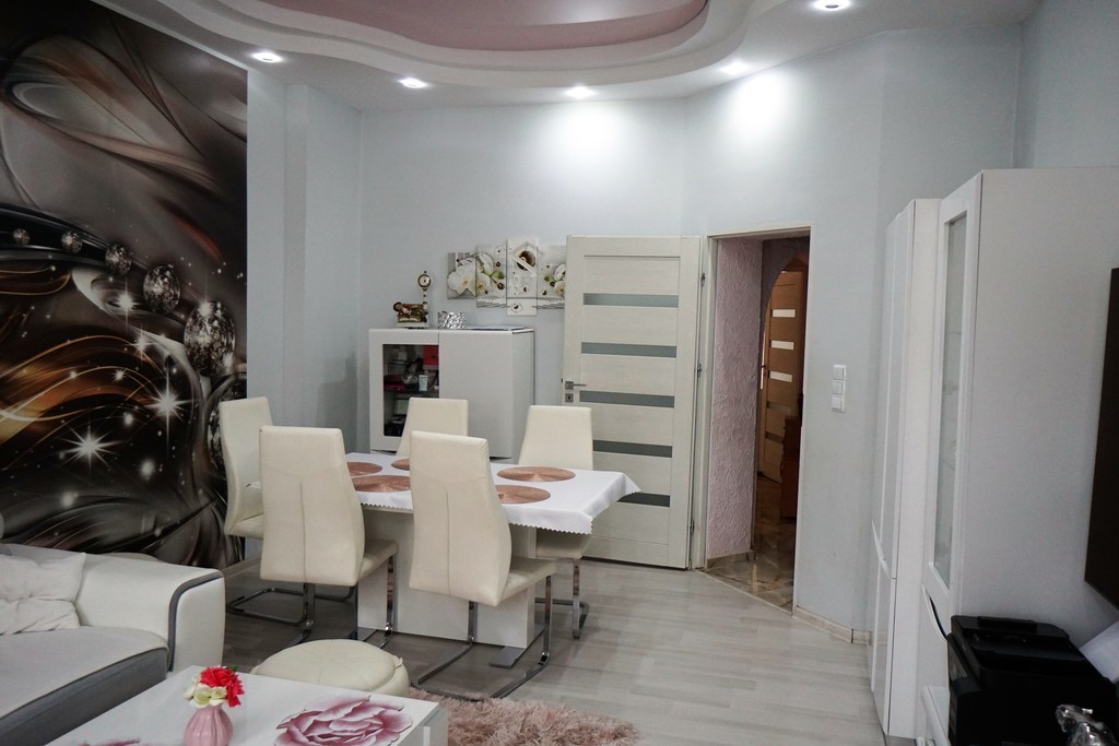 W pokojach dobrej jakości panele, ściany w gładzi, wielostopniowy obniżany sufit z modernistyczną iluminacją. Wszystkie pomieszczenia zostały urządzone z dbałością o detale i elegancko wykończone. Z większego pokoju wyjście na balkon z widokiem na centrum miasta.