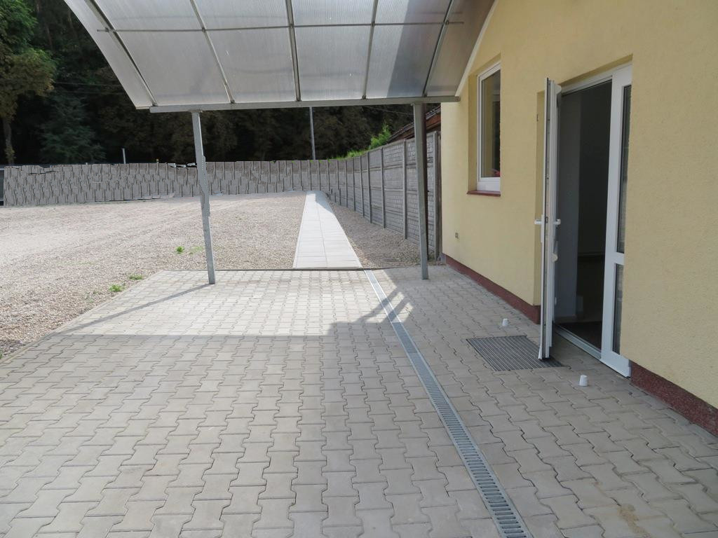 Przed lokalem duża działka ( ok. 2800 m2) – możliwość wykorzystania jako parking lub powierzchnię handlową. Plac utwardzono 60 cm warstwą tłucznia, oświetlony i monitorowany.