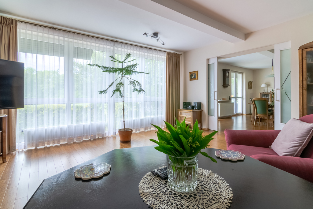 pokój dzienny (oddzielony przesuwnymi drzwiami od jadalni, wejście też od korytarza)