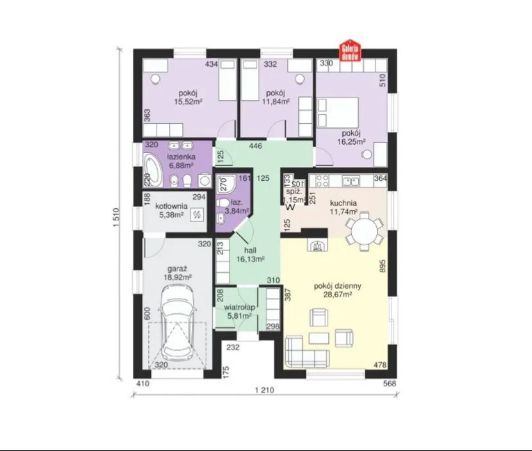 Na sprzedaż dom parterowy w stanie deweloperskim w Bobolinie blisko Szczecina, 15 min do centrum ! Powierzchnia całkowita domu wynosi 179,52 m2, powierzchnia użytkowa 117 + garaż 142 m2 na działce o powierzchnii 1152 m2. Na powierzchnię 179,52 m2 składa się: salon 26,67 m2 z aneksem kuchennym 11, 74 m2, wydzielona spiżarnia 1,15 m2, 3 sypialnie 16,25 m2, 15,52 m2, 11,84 m2, 2 łazienki 6,88 m2, 3, 84 m2, kotłownia 5, 38 m2, hall 16,13 m2, wiatrołap 5, 81 m2, garaż jednostanowiskowy w bryle 18,92 m2. Kąt nachylenia dachu wynosi 25 stopni, wysokość budynku 6,69 m. Dom idealnie nadający się dla rodziny 2+2 z podziałem na strefę dzienną, salon z kominkiem, z wyjściem na taras oraz strefę nocną prowadzącą przez dość długi korytarz w jednej lini kompleks sypialni. Dodatkowo możliwość adaptacji strychu zyskując przy tym około 20 m2. Wielkim atutem domu jest położenie względem stron świata, przez co salon z wyjściem na taras będzie większości dnia nasłoneczniony, co sprzyja domownikom przy korzystaniu z ogrodu.