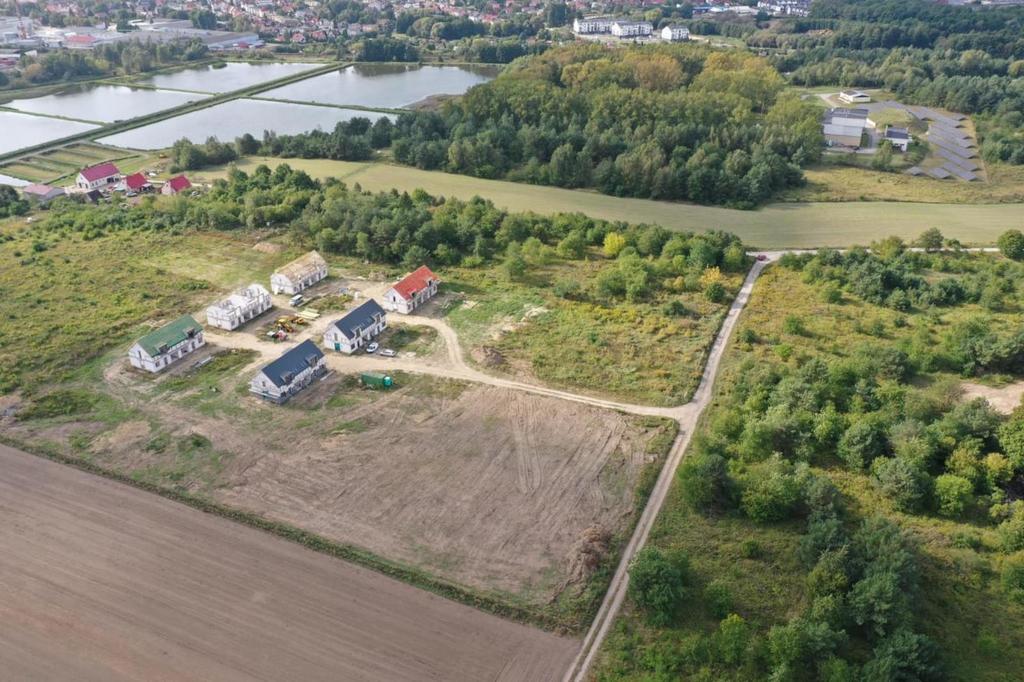 Przedmiotem sprzedaży jest segment budynku w stanie deweloperskim, wybudowany w technologii tradycyjnej na podstawie projektu „DOM W CYKLAMENACH 5” z niewielkimi modyfikacjami. Projekt charakteryzuje się prostą, zwartą bryłą. Idealny dla rodziny 2+2 lub 2+3.