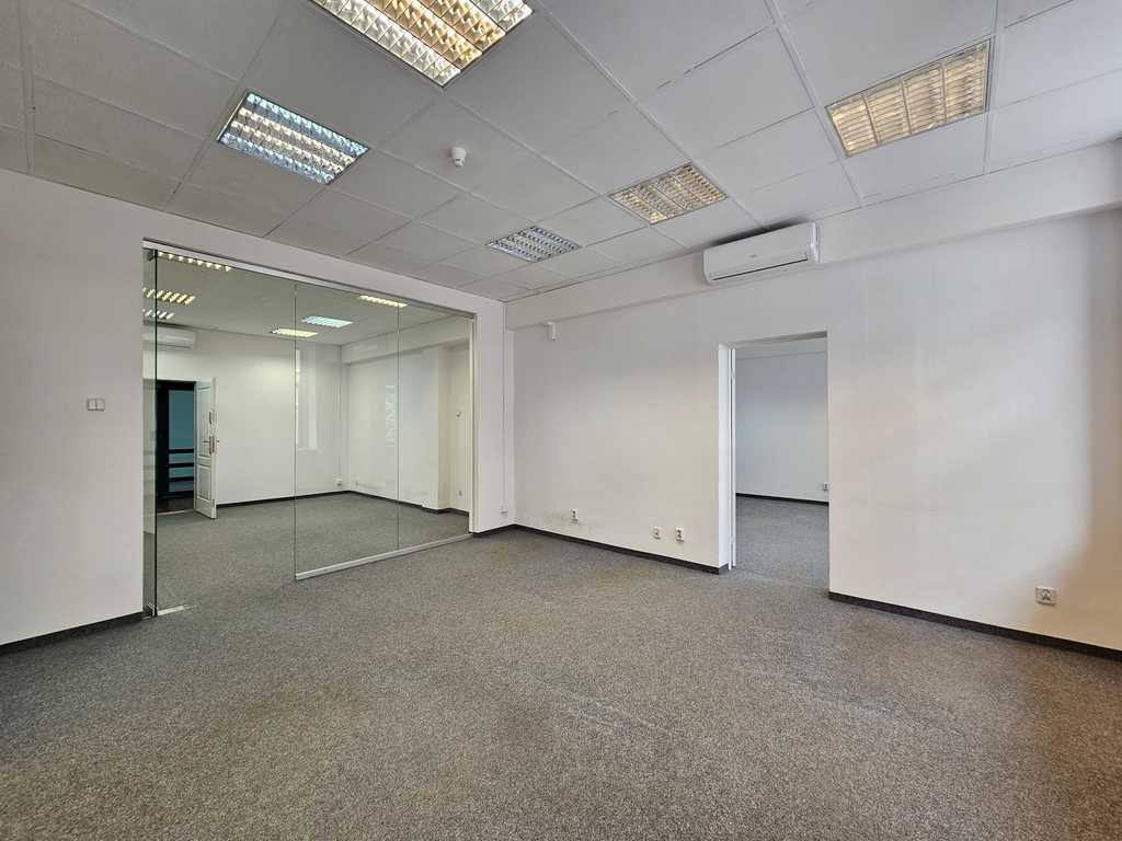 Rozkład pomieszczeń: kuchnia, toaleta damska, toaleta męska, sekretariat, 2 mini salki konferencyjne, 7 pomieszczeń biurowych w tym 3 duże pomieszczenia ponad 40m2, możliwość zrobienia części open space około 120m2.