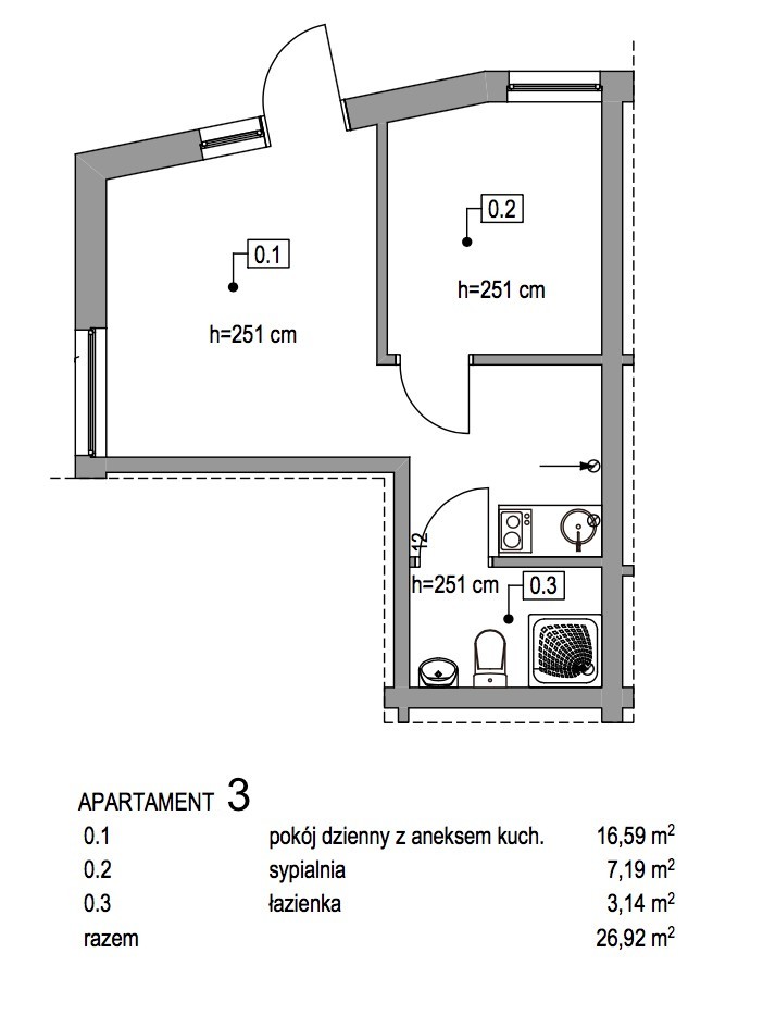 – powierzchnie apartamentów – 33,14m2, 33,14m2, 26,92m2, 28,93m2