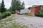 Wjazd na posesję przez szeroką bramę, teren utwardzony nadający się pod tiry.