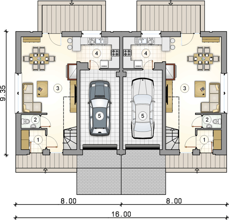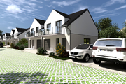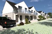 Zamknięte osiedle z dwóch stron brama wjazdowa na pilota .Osiem lokali o jednakowym metrażu 110,30 m 2.